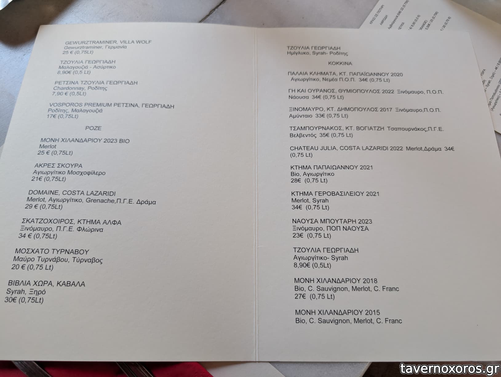 Στα κρασιά είχαν επιλογές όχι κάτι το ιδιαίτερο όμως και με επιλογές για ποτήρι σχετικά οικονομικες τιμές για μπουκαλι επίσης