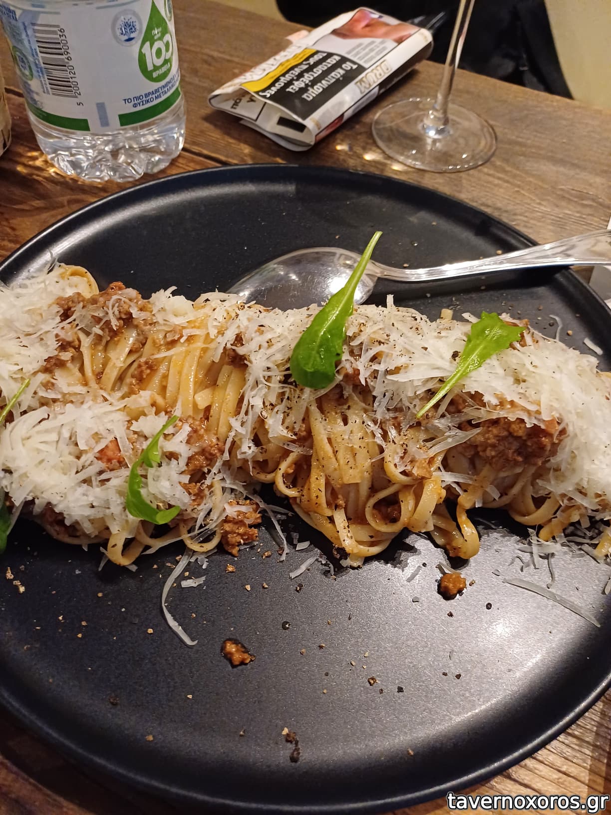 Λινγκουίνι με κιμά black angus. O κιμάς πολύ ιδιαίτερος, καταλάβαινες ότι είναι κάτι διαφορετικό, βαρύς σε γεύση, σε μας άρεσε, κάποιοι πιθανών να το μισήσουν.