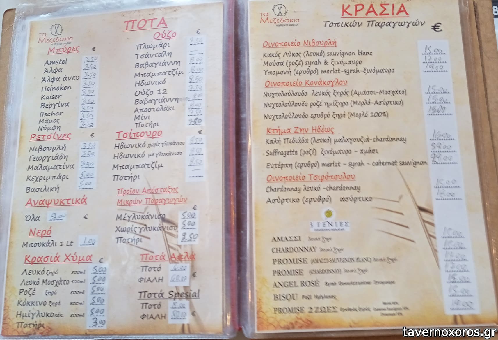 | Λέξεις κλειδιά | #πεζόδρομος, #εξωτερική θερμάστρα, #μεζέδες, #σκορδόψωμο, #φάβα, #πάπρικα, #καβουροσαλάτα, #γαύρος μαρινάτος, #κοτόπουλο, #γαρίδες, #ντολμαδάκια, #μπιφτεκάκια, #σνίτσελ, #burgers, #ντάκος, #χαλούμι, #μπάτζος, #κολοκυθάκια, #πιπεριές, #μανιτάρια, #κολοκυθοκεφτέδες, #μπαχοβίτικες πιπεριές, #τηγανιά, #ομελέτα, #λουκάνικο, #κεφτεδάκια, #πρασοτηγανιά, #μπιφτέκι προβατίνας, #σουτζουκάκια, #κεμπάπια, #πανσετομπριζόλα, #σουβλάκια, #παϊδάκια, #μπιφτέκι γεμιστό, #πανσέτα, #ψαρονέφρι, #μπιφτέκι, #μοσχαρίσια σπαλομπριζόλα, #steaks, #πέστροφα, #γαύρος, #σαρδέλα, #καλαμαράκια, #χταπόδι, #μύδια, #μπακαλιάρος σκορδαλιά, #καλαμάρι |