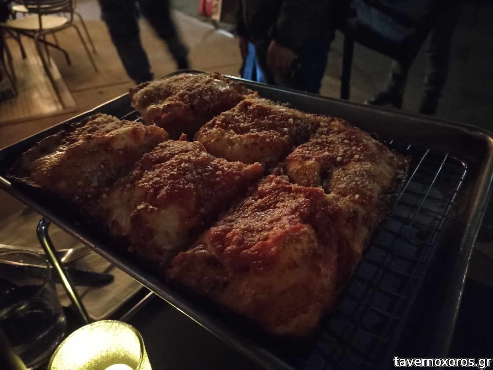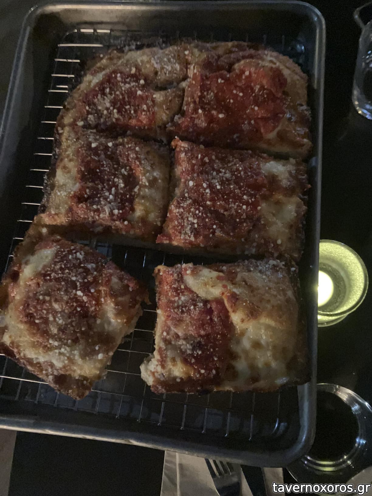 Δοκιμάστηκε, επίσης, η Detroit-style pizza, για την οποία είναι και γνωστό. (Παρένθεση: Η Detroit-style pizza είναι ορθογώνια, ψωμοειδής, με αφράτο σώμα, που γίνεται σε ταψί. Η σάλσα μπαίνει πάνω από τα υλικά). Την πιο απλή εδώ, με μοτσαρέλα και σάλσα. Η μαρινάρα ήταν φοβερά νόστιμη, πρέπει να έχει και τριμμένη παρμεζάνα. Χωρίς υπερβολή θα πω πως ήταν η πιο νόστιμη πίτσα που έφαγα σε όλο το ταξίδι (και φαγώθηκε αρκετή πίτσα).