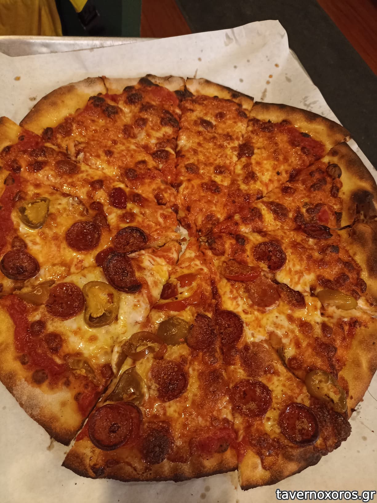 Δοκιμάστηκε η Οriginal tomato pie with mozzarella, καθώς και η Original με pepperoni και καυτερές πιπεριές. Αμφότερες γευστικές, μες στην απλότητά τους - ειδικά αυτή με το pepperoni.