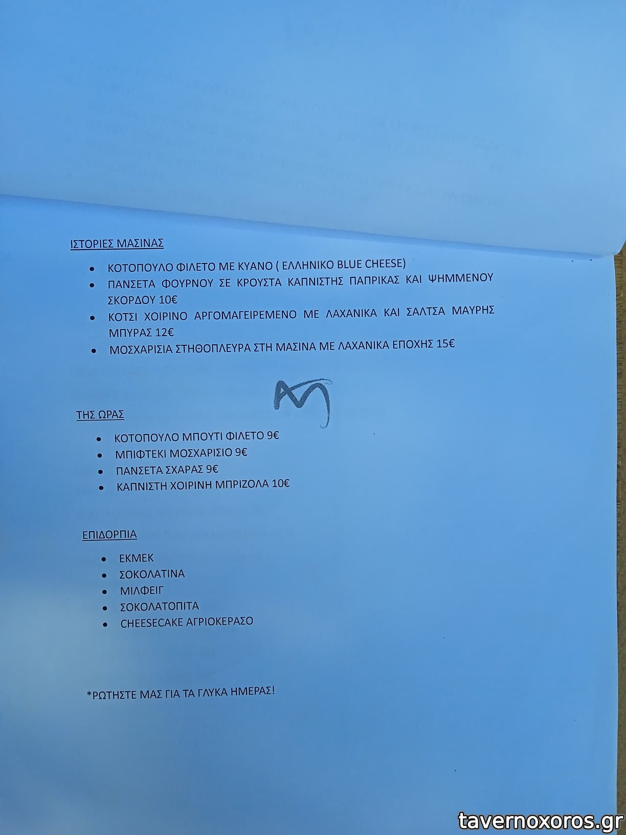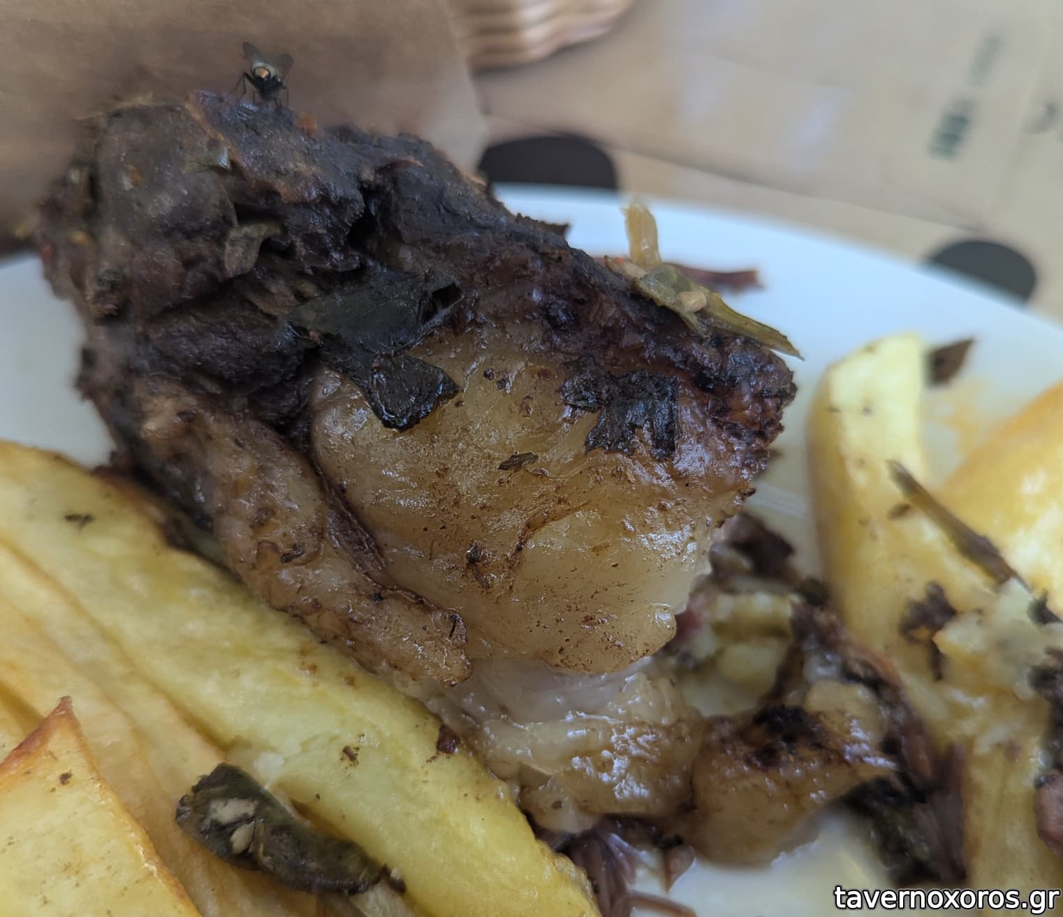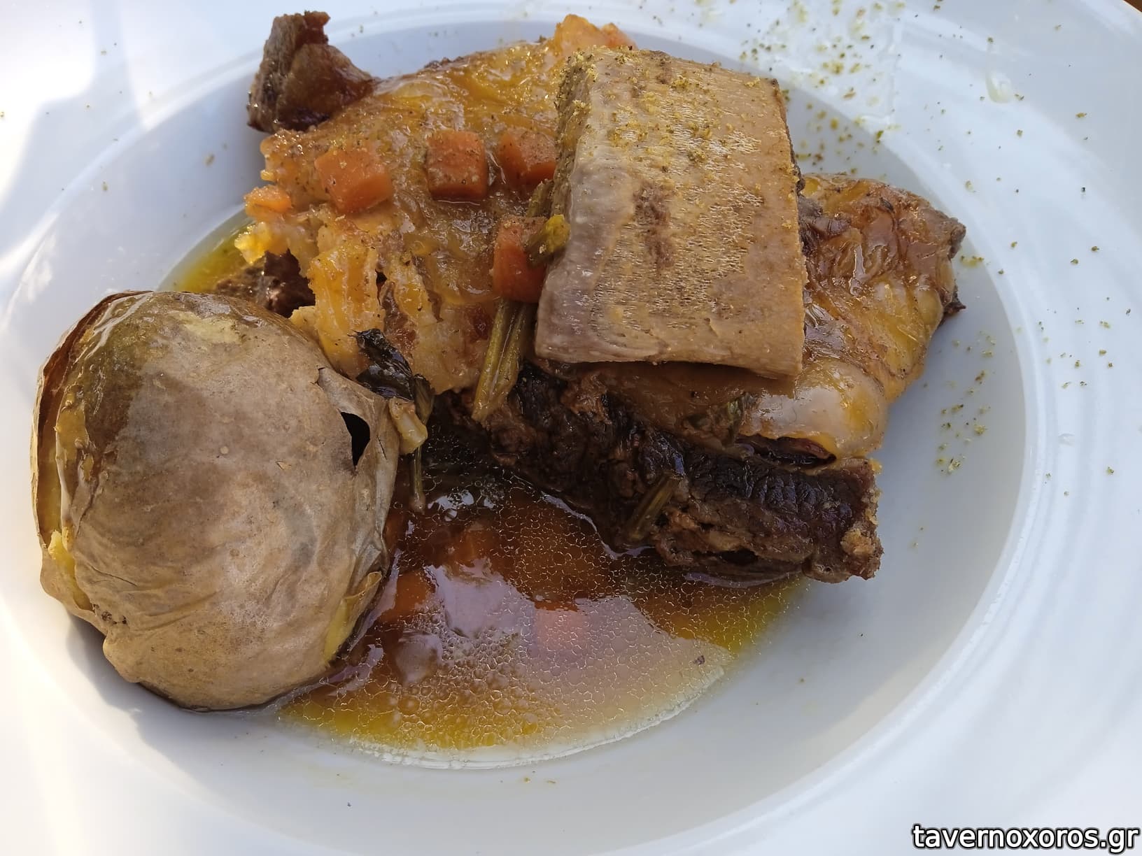 "Μοσχαρίσια στηθοπλευρά στη μασίνα με λαχανικά εποχής" (καλό, θέλει γρήγορο φάγωμα αλλιώς στεγνώνει γρήγορα, η περιγραφή μπερδεύει γιατί τα λαχανικά ήταν απλώς στην επιφάνεια για τη γεύση)