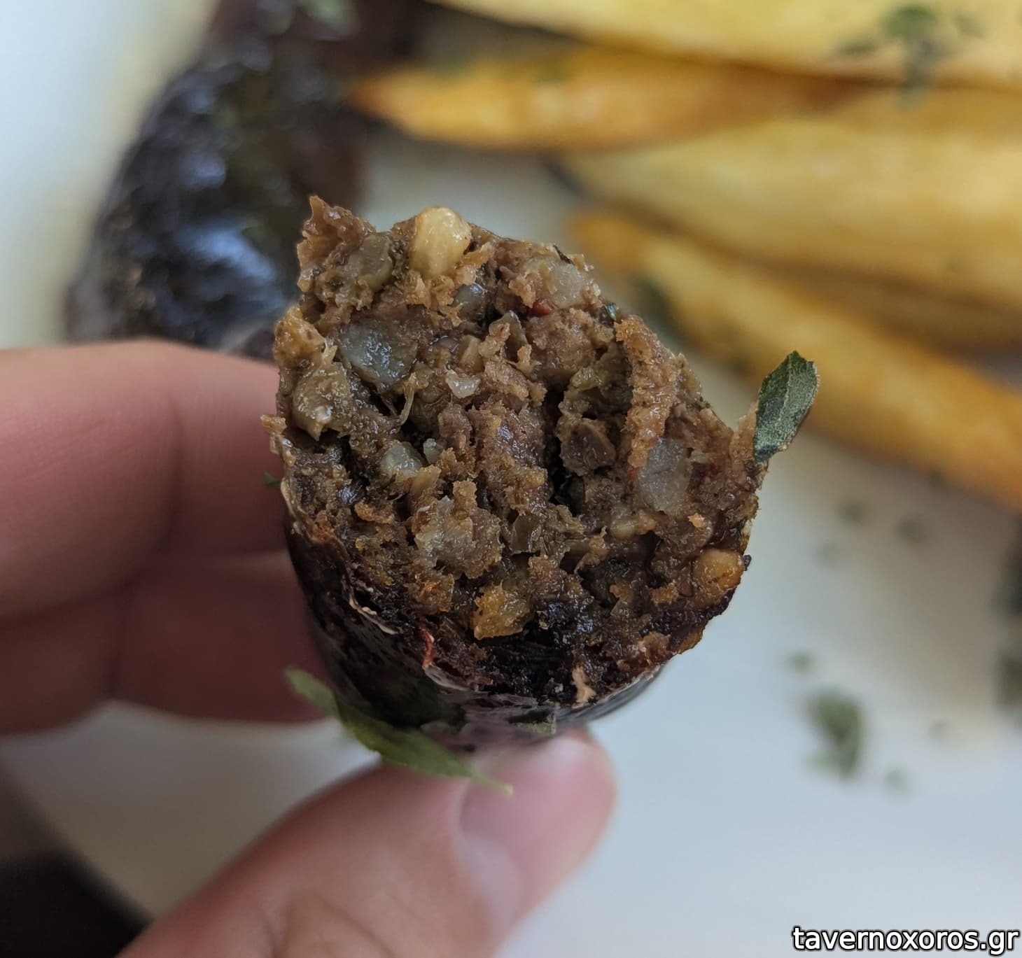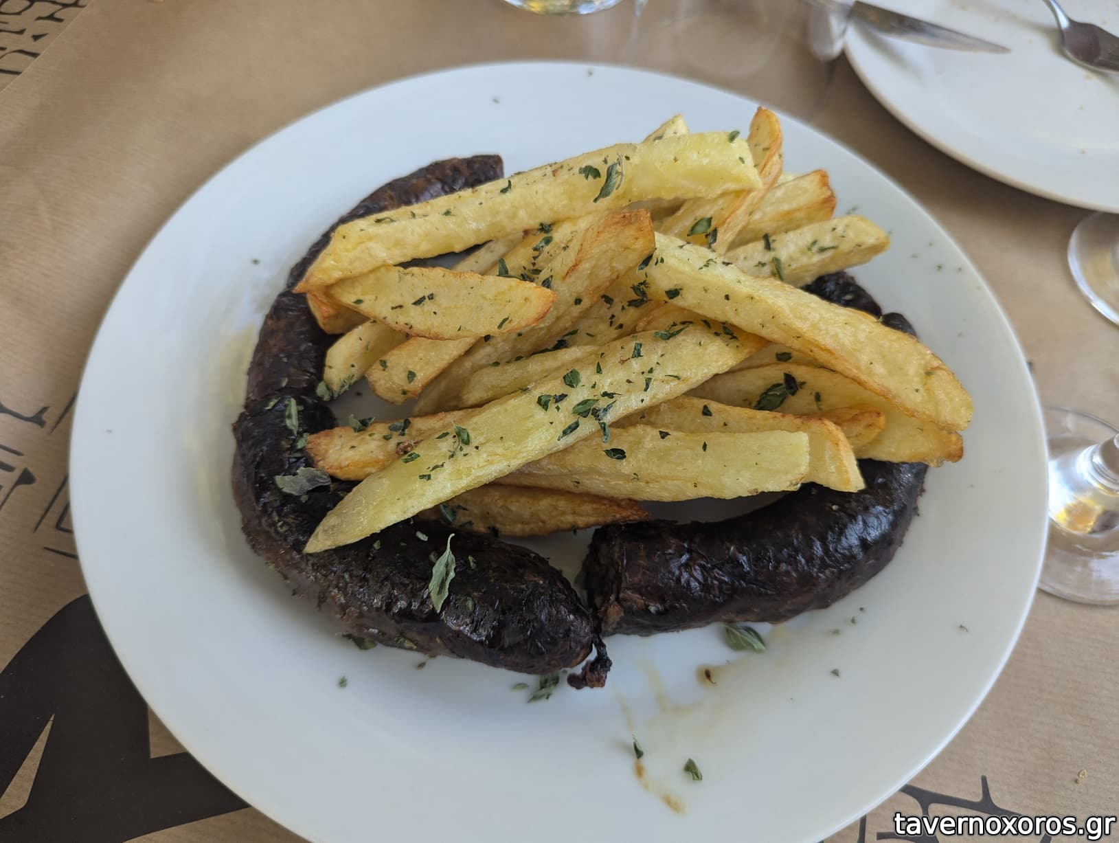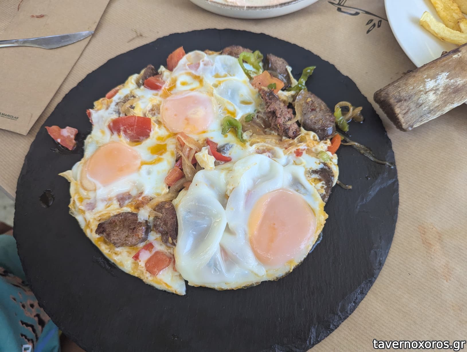 "Καγιανάς με λουκάνικο χωριάτικο και τηγανιτές πατάτες" (καλό, και πάλι η περιγραφή μπερδεύει γιατί ήρθε χωρίς πατάτες)