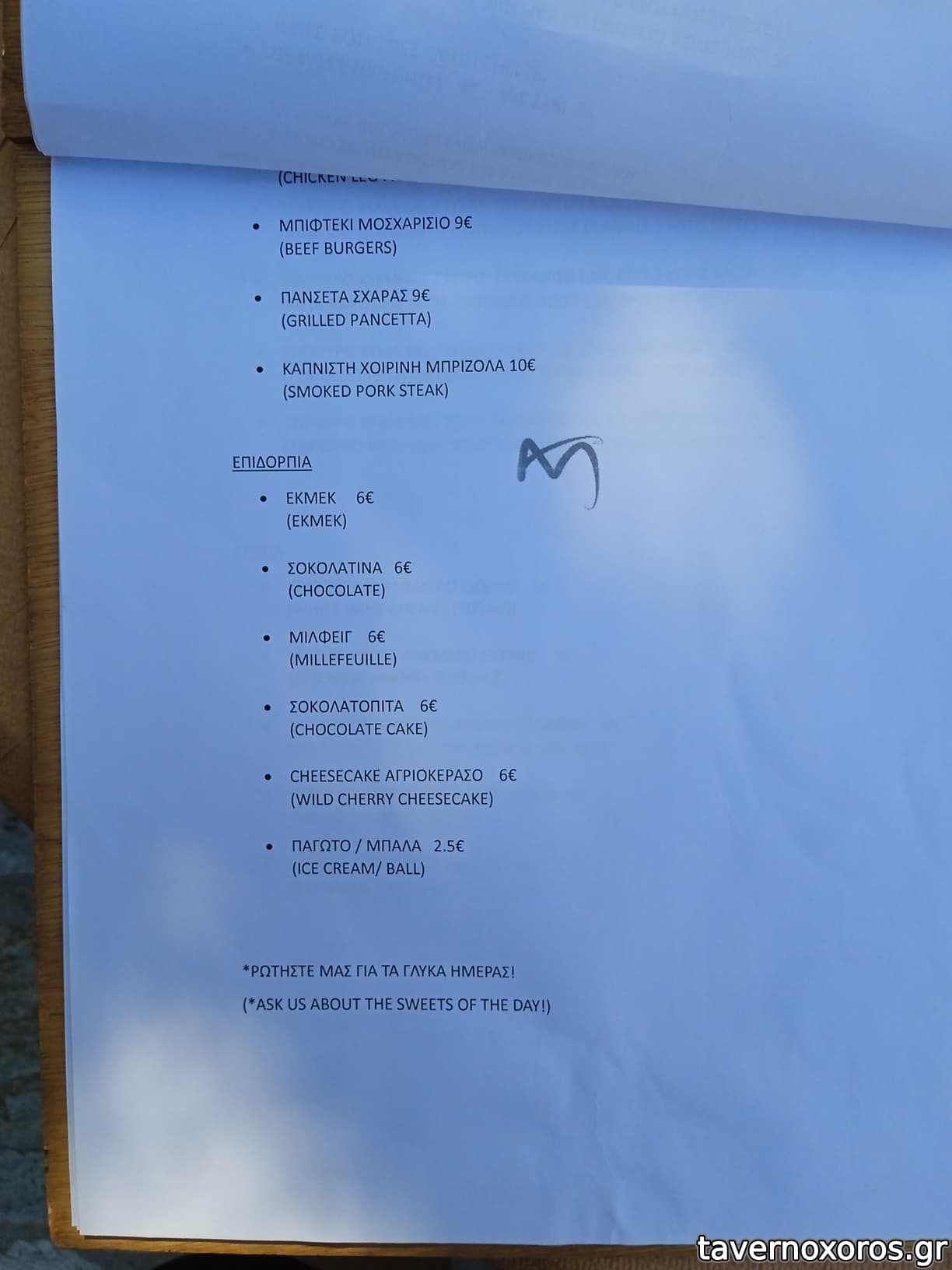 "Πανσέτα φούρνου σε κρούστα αλατιού και καπνιστής πάπρικας" (καλό, η περιγραφή μπερδεύει γιατί ούτε κρούστα αλατιού είχε, ούτε καπνιστή πάπρικα ένιωθες)