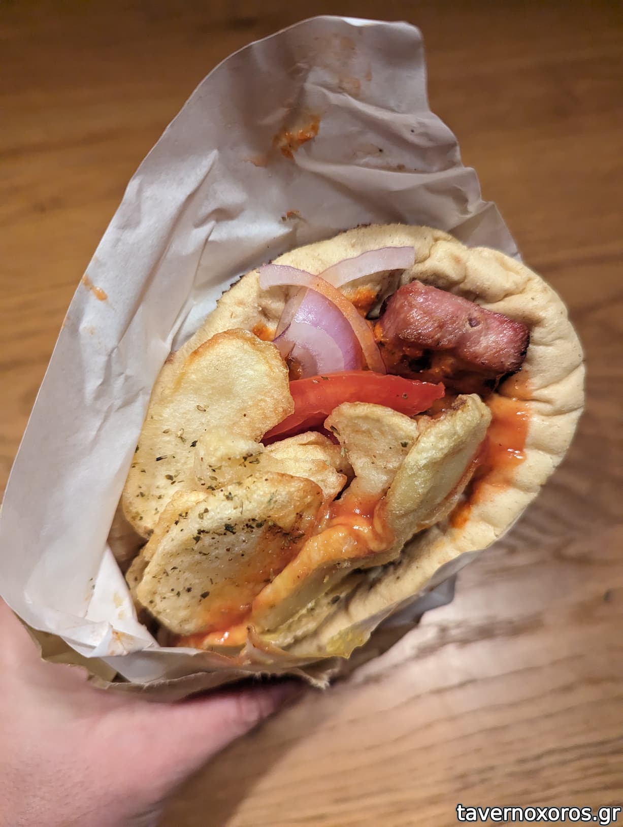 Στα θετικά ότι δεν χρεώνει τη σαλάτα και οι τιμές (3 ευρώ το σουβλάκι, 3,