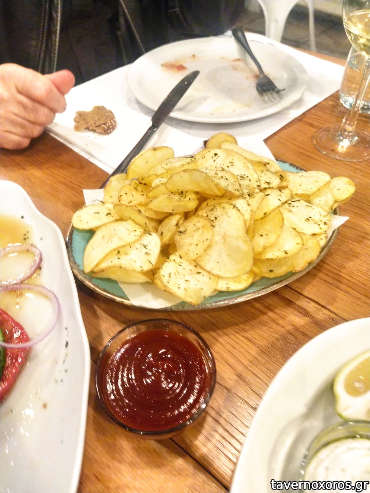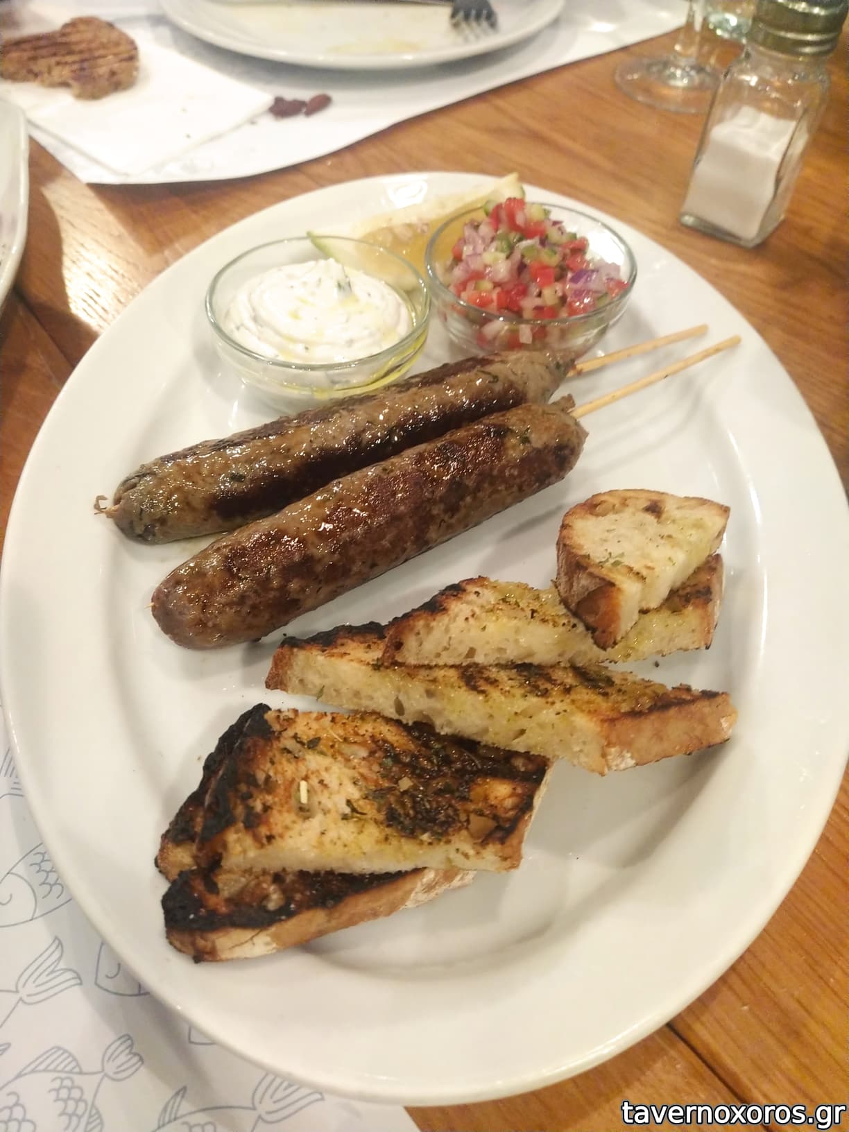 Στα του φαγητού μείναμε πολύ ικανοποιημένοι. Μικρός κατάλογος, αλλά με ενδιαφέρουσες επιλογές και όχι-τόσο-κλασικά φρέσκα ψάρια. Επιπλέον όσων ανέβασα στις φωτογραφίες, πήραμε και μισό κιλό μπαρμπούνια στη σχάρα, τα οποία έθεσαν σοβαρή υποψηφιότητα για τα καλύτερα μπαρμπούνια που έχω φάει ποτέ. Το ψήσιμο τέλειο (σε αντίθεση με τον ροφό, που είχε στεγνώσει ελαφρώς), τα ψαράκια ολόφρεσκα με μπόλικο ψαχνό και τραγανή πέτσα απέξω. Κρίμα που δεν τα πήρα φωτογραφία. Ψάχνοντας για αρνητικά θα συμφωνήσω με τον Σταύρο ότι οι μερίδες ήταν σχετικά μικρές και ακριβές συγκριτικά με τον μέσο όρο.