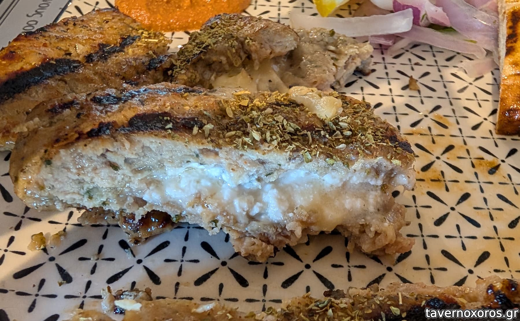 Μπιφτέκι γεμιστό (μέτριος κιμάς, νόστιμα τα τυριά)