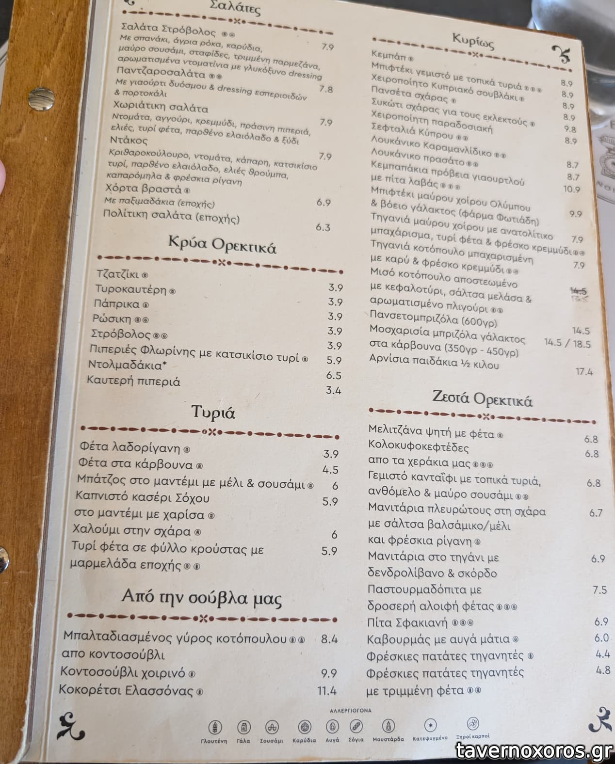 Κατάλογος τυπικός αλλά έχει μερικές τσαχπινιες, όπως φρυγαδελι και σεφταλιά.