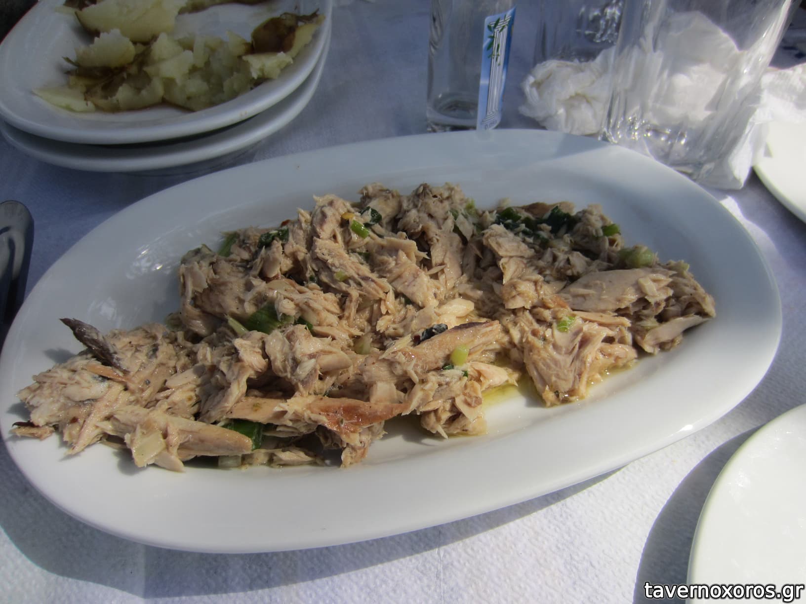 - Τονοσαλάτα με φρέσκο κρεμμυδάκι. Ο τόνος κονσέρβα, όχι κάτι το ιδιαίτερο.