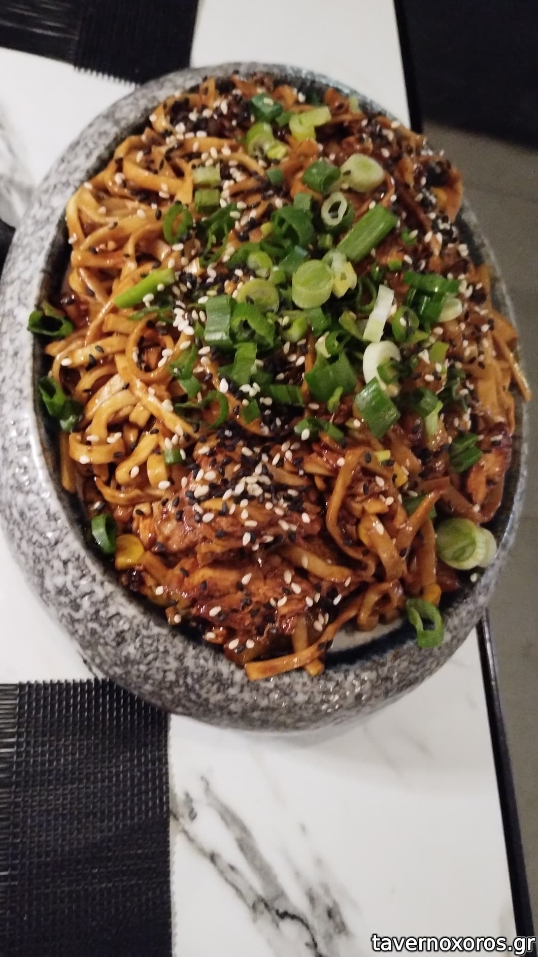 Noodles chicken με noodles αβγού (οκ, τα noodles ήθελαν λίγο πιο πολύ βράσιμο. Ανανάς περίεργο συστατικό)