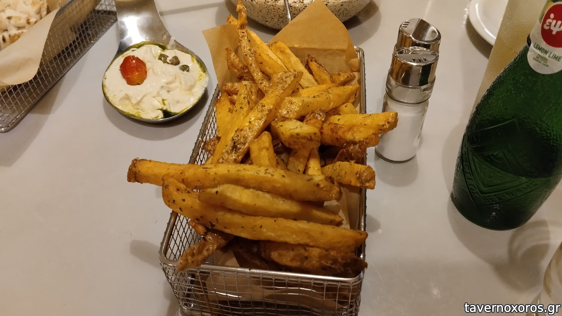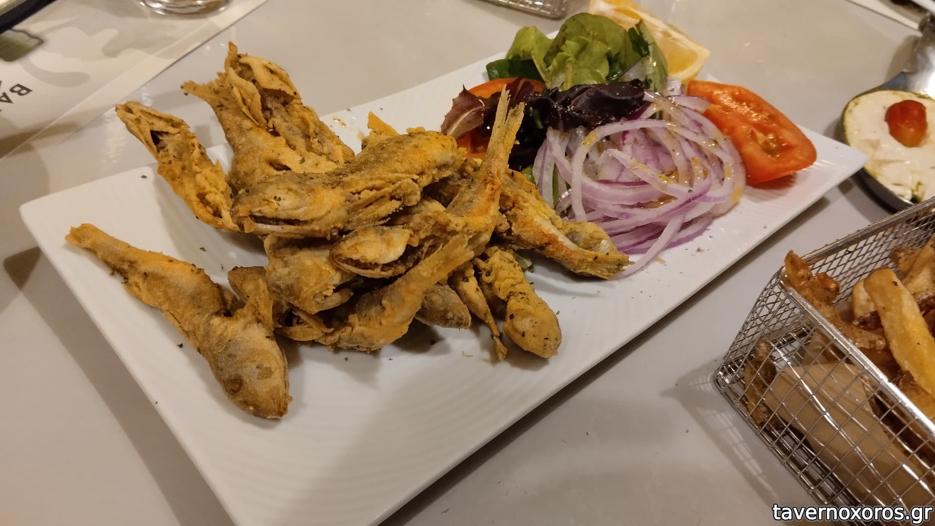 Δοκιμάσαμε επίσης θράψαλα τηγανητά, απλά οκ. Όπως και οι πατάτες τις οποίες σερβίρουν τηγανισμένες με τη φλούδα τους.