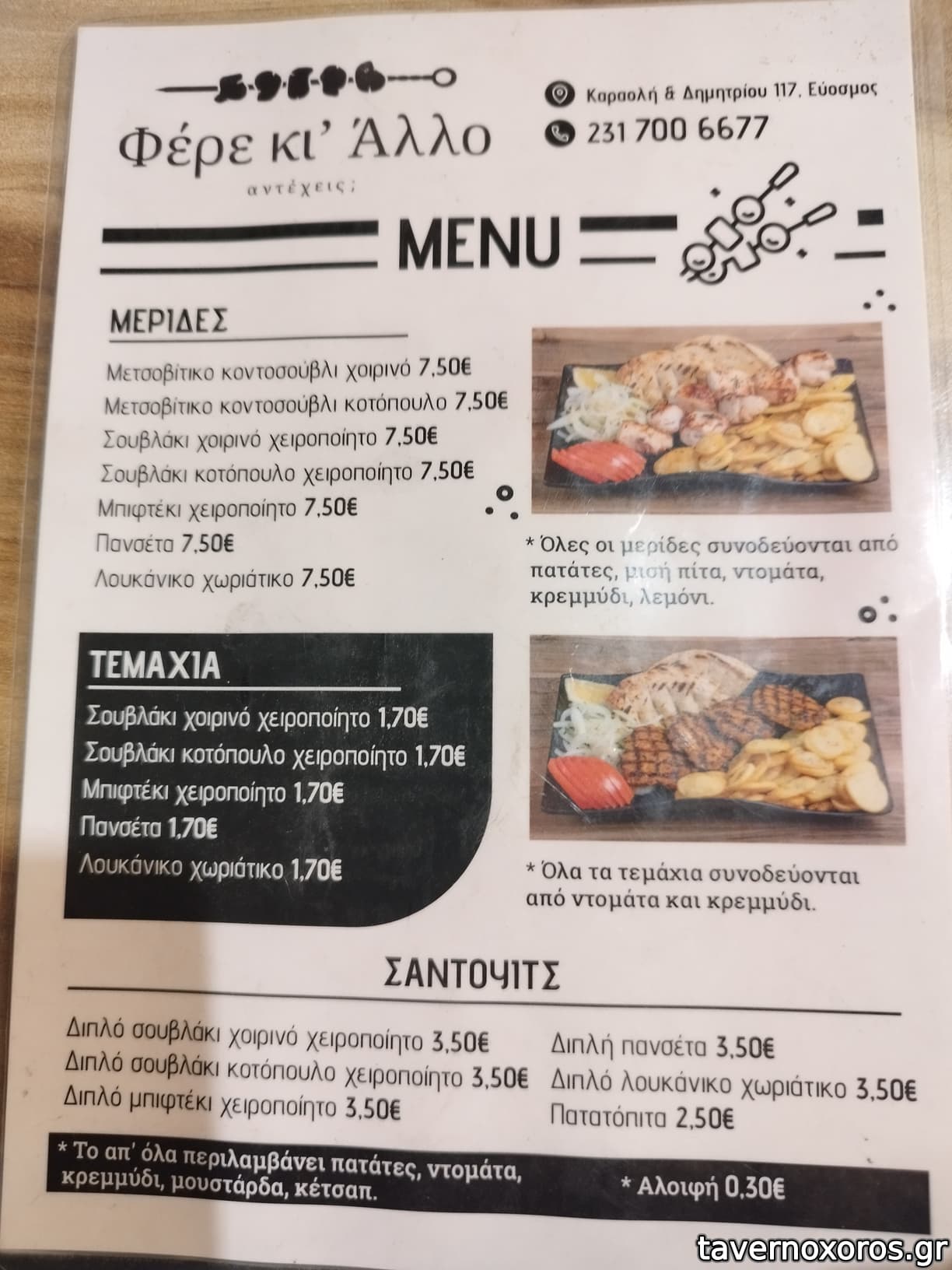 Πέρασα τυχαία απόγευμα καθημερινής, δεν είχα γνώση για την αλλαγή και είχα μείνει στην παλιά ονομασία. Πεινούσα και αυτό που αντίκρισα με κέρδισε για να μπω, ξύλινη επένδυση, κάπως εναλλακτικός χαρακτήρας για σουβλατζίδικο, μου έβγαλε μια τιμιότητα. Χαλαρό κλίμα και στα ηχεία αφιέρωμα Χιώτη-Λίντα.