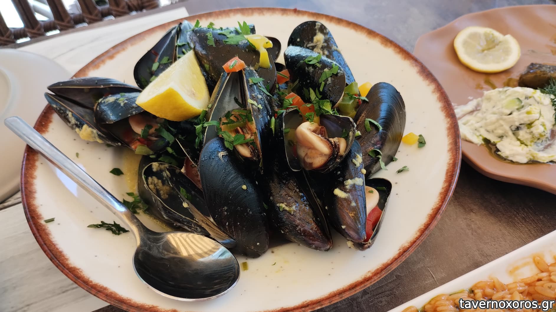 Μύδια αχνιστά (πολύ καλά, ζουμί καλό. Αν ήταν λίγο πιο πηχτό, θα παράγγελνα τηγανητές πατάτες στο τέλος!!)