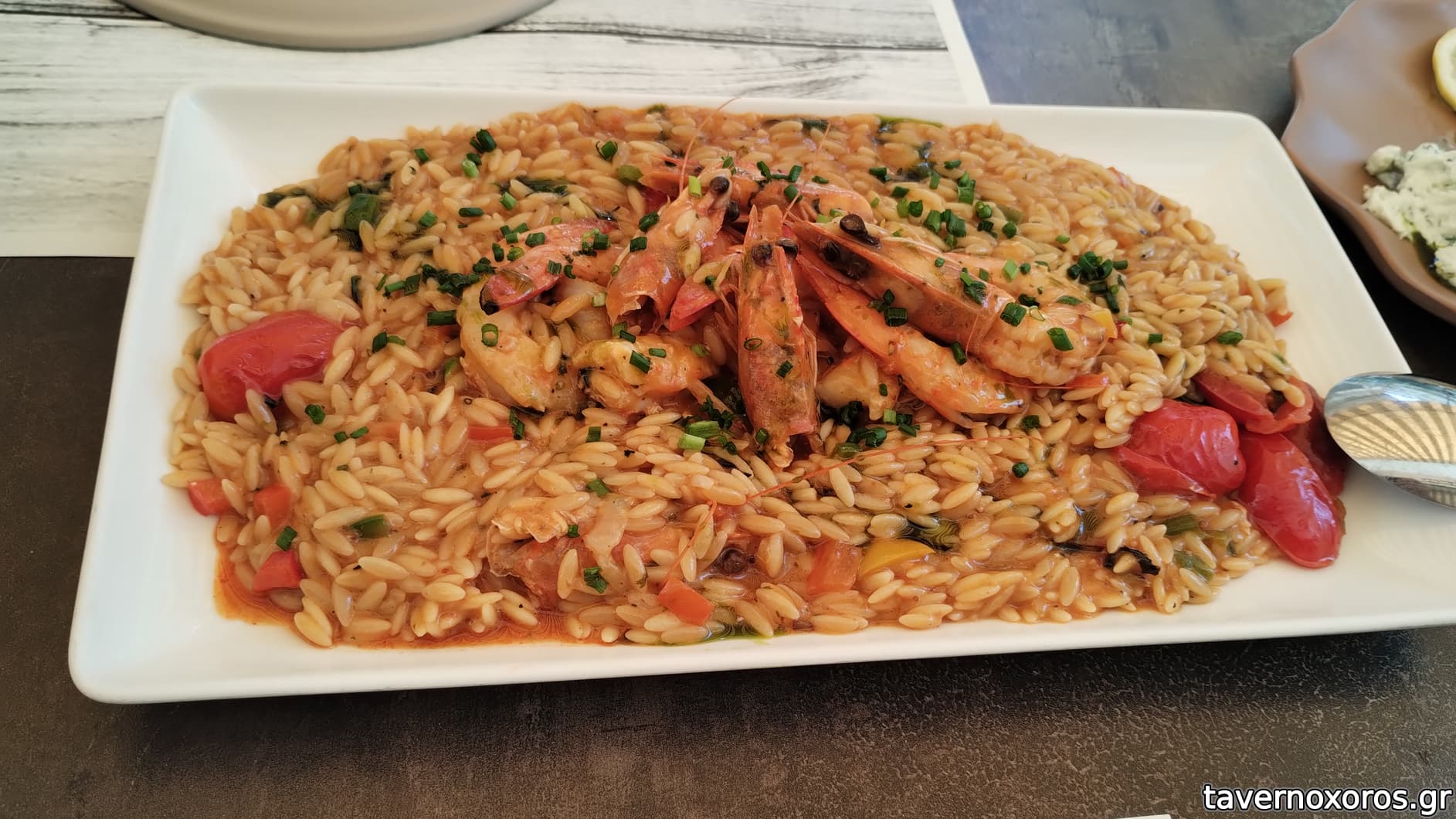 Γιουβέτσι με γαρίδες (καλό απλώς. Το κριθαράκι λίγο Αλ ντεντε. Ήθελε λίγο ακόμη δέσιμο, να σφίξει με το άμυλο)