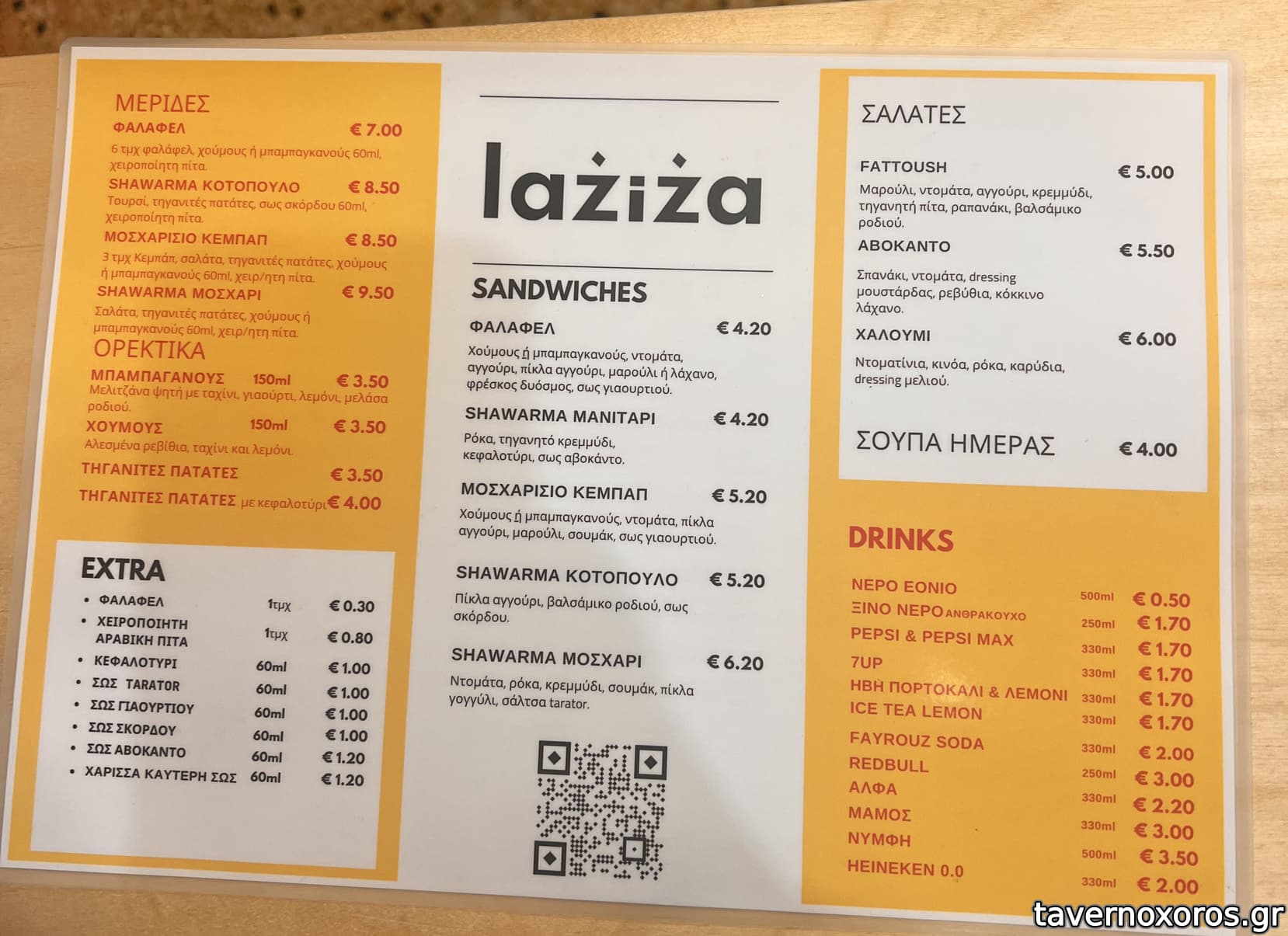 Φεβρουάριος 2024, πήρα ένα shawarma μοσχάρι με χαρίσα (βλ. φωτο) με 6,20 €. Τα παιδιά που το δουλεύουν (όλοι από τη Συρία) ευγενικά και εξυπηρετικά, κέρασαν κι ένα φαλάφελ με λιγάκι χούμους κατά την αναμονή. Δεν έχουν δικό τους πακετά, οπότε το ντελίβερι γίνεται μόνο μέσω πλατφόρμας. Το σάντουιτς πολύ καλό, αλλά και αρκετά ακριβό.