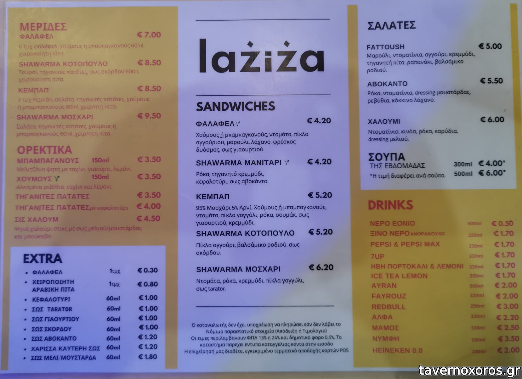Δοκιμάστηκε φαλάφελ και shawarma κοτόπουλο (σύνολο 9,