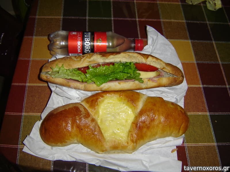 Προτείνω κουλούρι (φρατζόλα στην ουσία ολόκληρη) με φέτα και ελιά με 1,