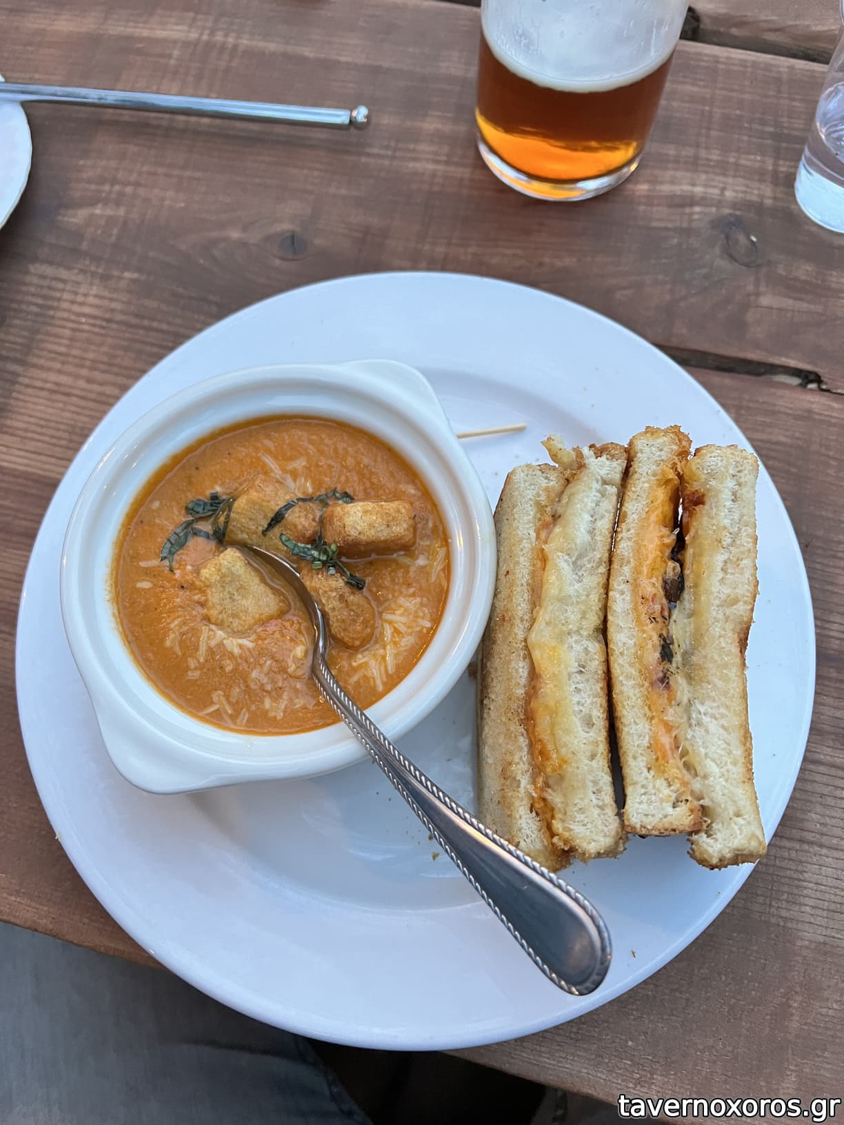 Tomato soup & grilled cheese sandwich (πιάτο ημέρας, πολύ καλό)