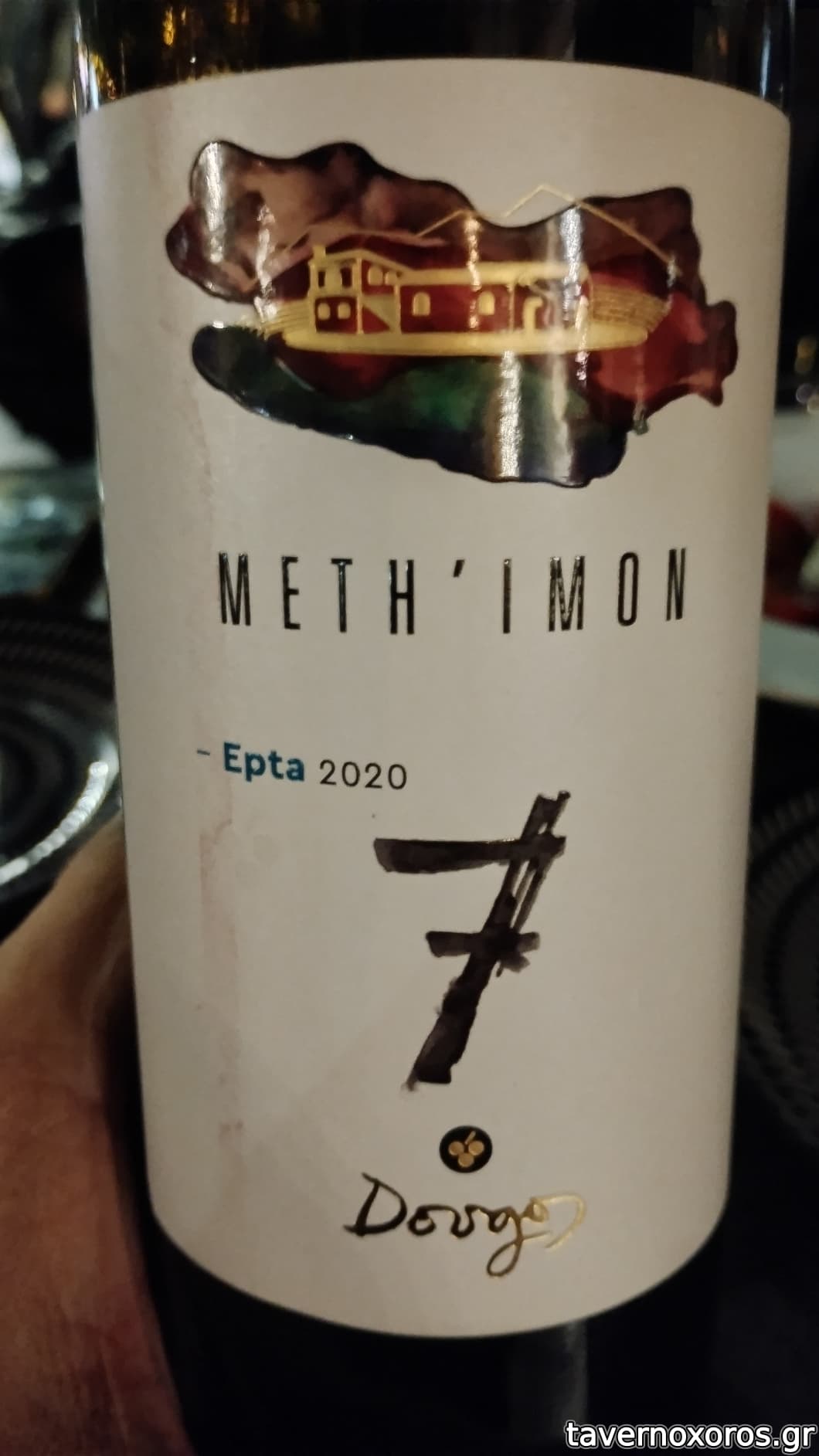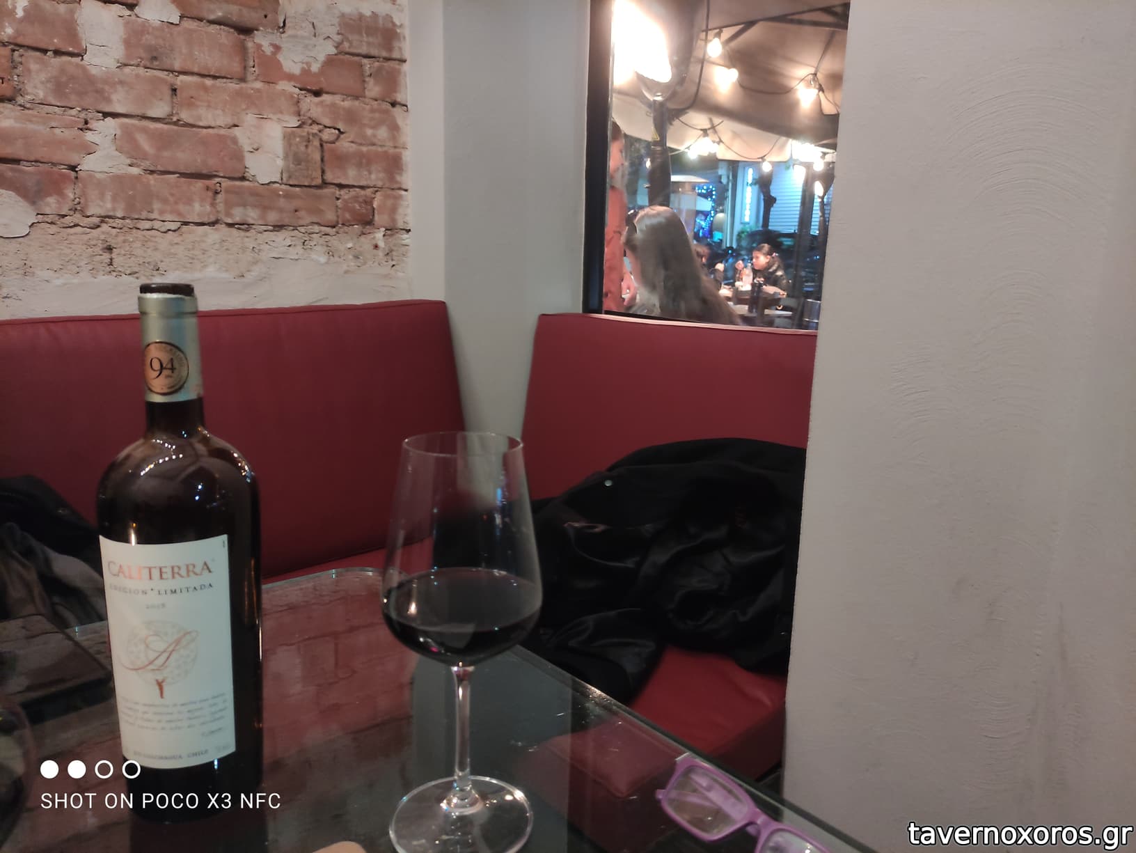 Από κρασί καλή ποικιλία (ελληνικός και διεθνής αμπελώνας, φυσικά), τιμές από κανονικές έως δυσθεώρητες. Πήραμε ένα Μεθ' υμών 7 του Ντούγκου. Μάς το πρότειναν ως Syrah, αλλά είναι υπερ-χαρμάνι. Καλό ήταν, μεστό, καλή γεύση.