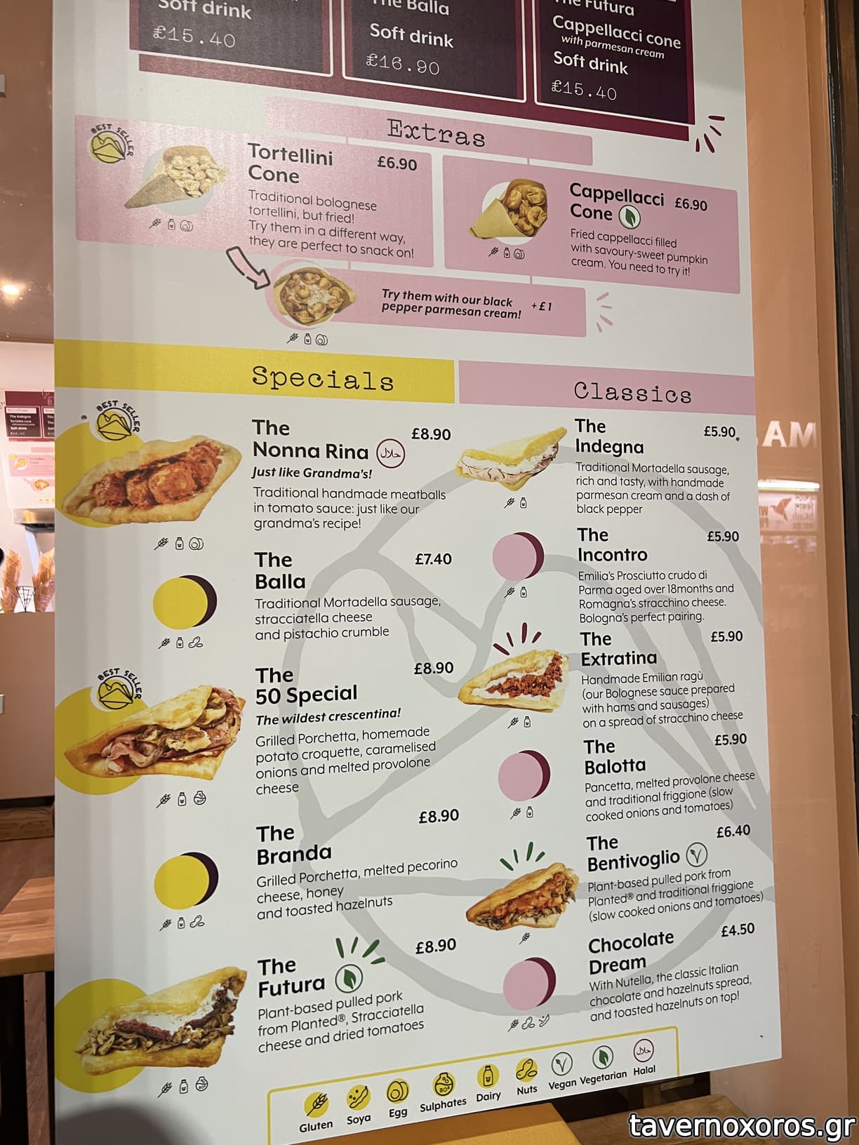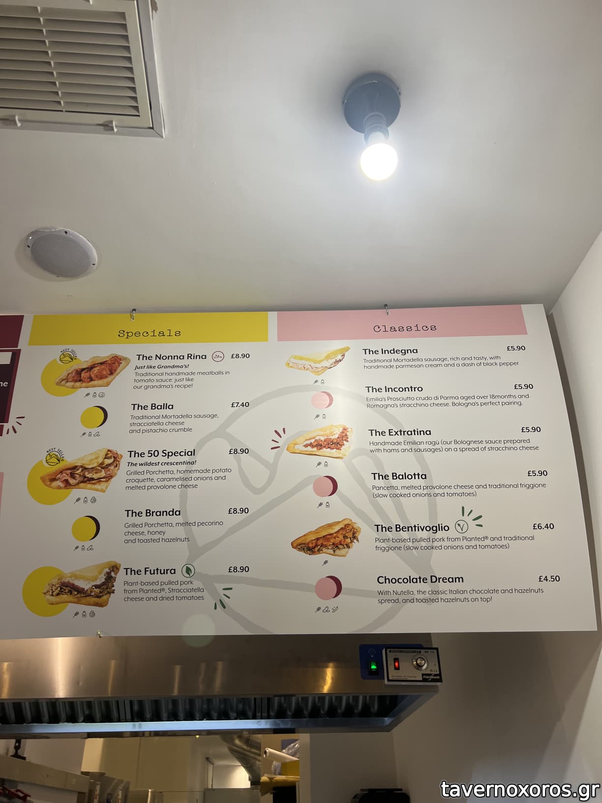 Μαγαζί που ανήκει σε αλυσίδα από την Bologna στην Ιταλία. Επικεντρώνεται σε street food της ίδιας πόλης. Το σάντουιτς που δοκίμασα με την μορταντέλα ήταν καταπληκτικό όσον αφορά υφή γεύση και ισορροπία. Δεν έχω επισκεφτεί ποτέ την Μπολόνια αλλα Ιταλοί μου είπαν ότι είναι πολύ κοντά στο αυθεντικό.