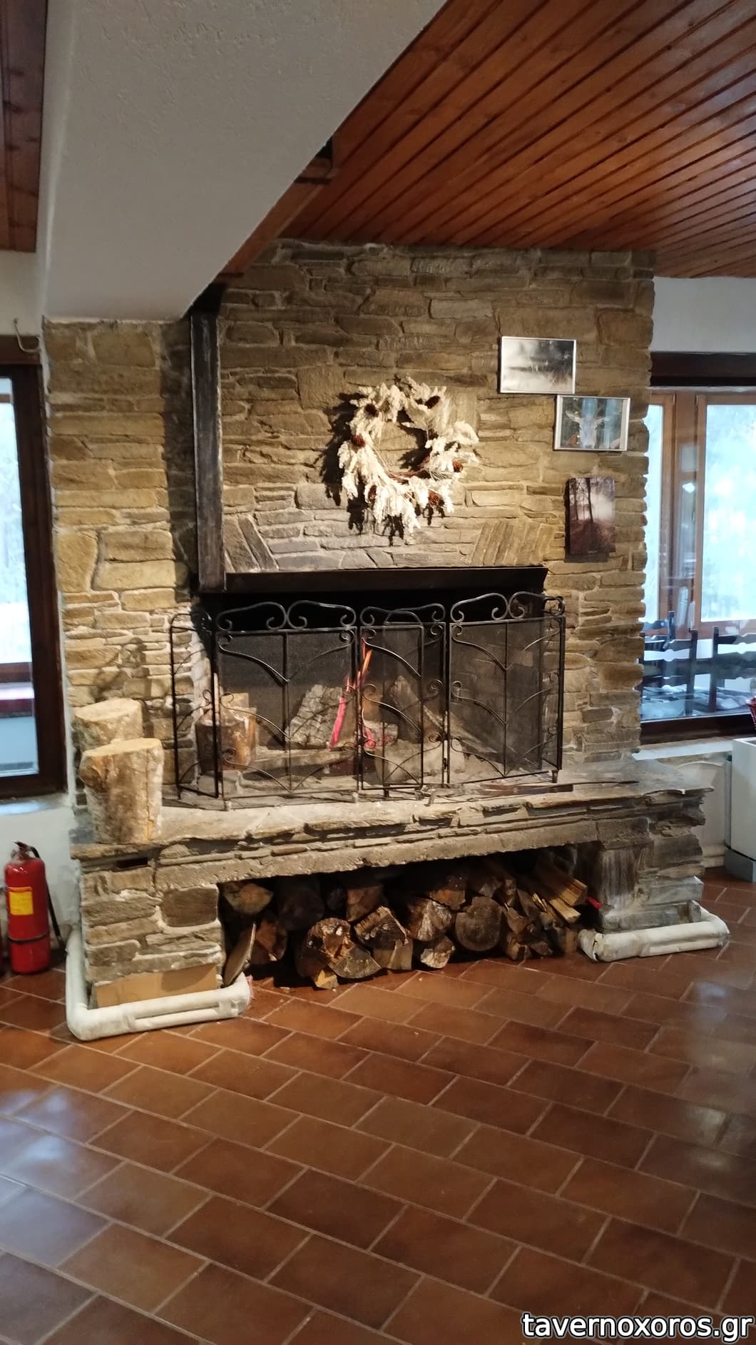 Το τζάκι του εσωτερικού χώρου. Απόλαυση να κάτσεις κοντά του.