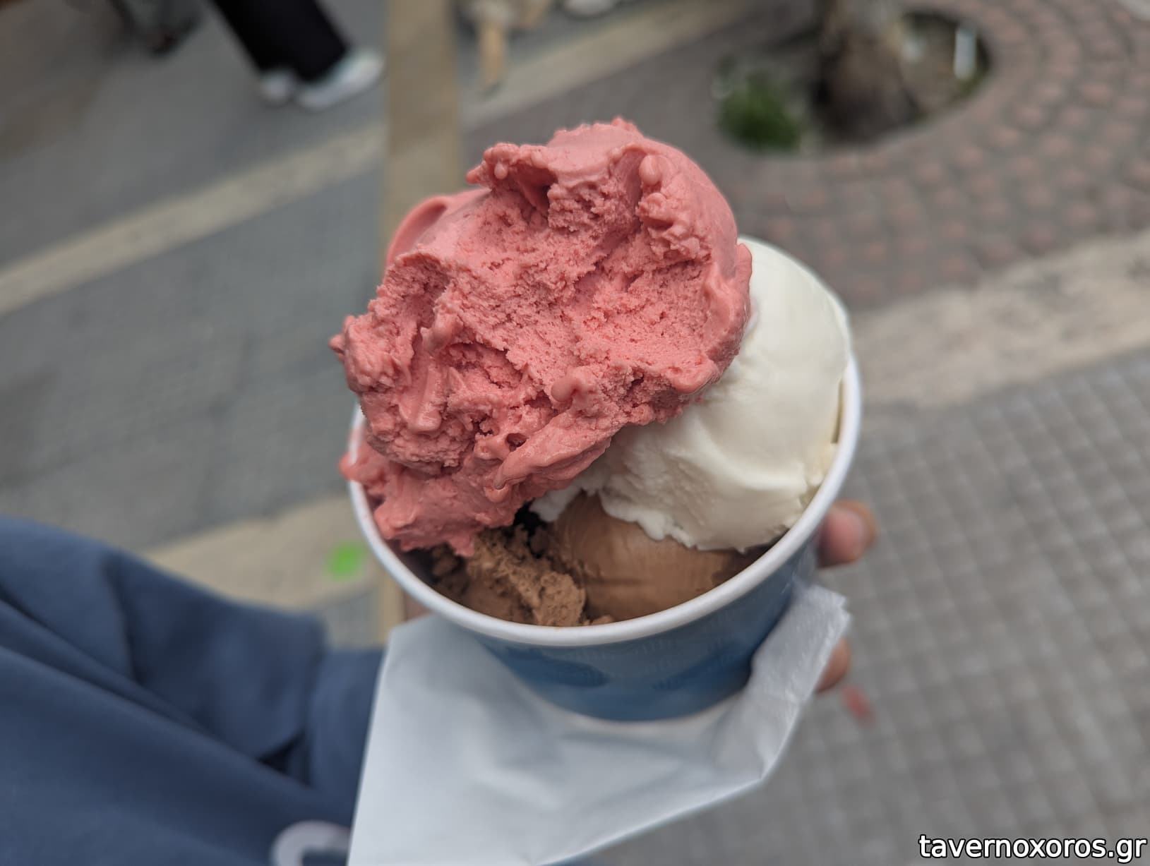 Παγωτό φράουλα, λεμόνι, σοκολάτα γάλακτος (μέτριες και οι 3 γεύσεις, το λεμόνι ήταν σαν fanta)
