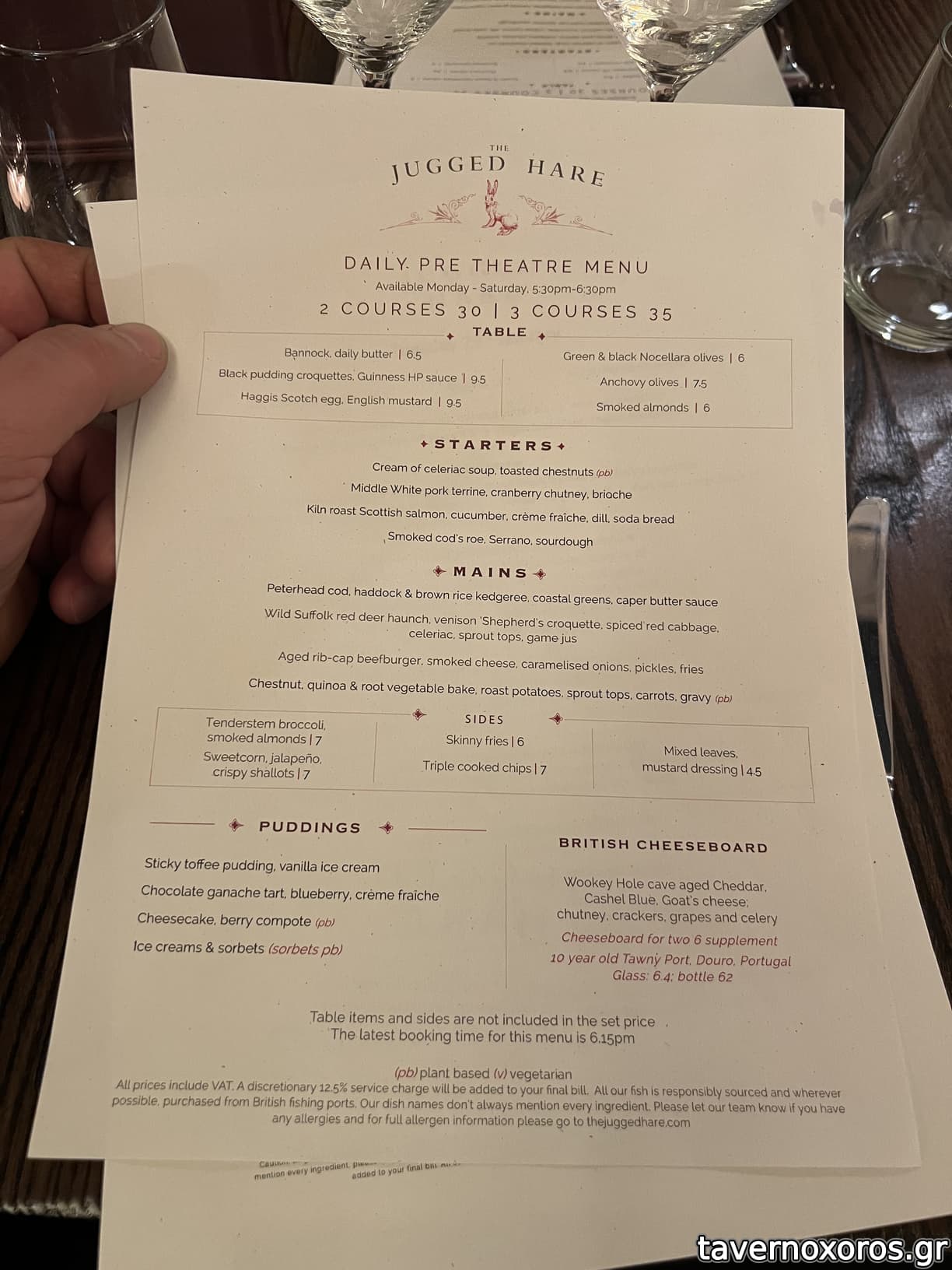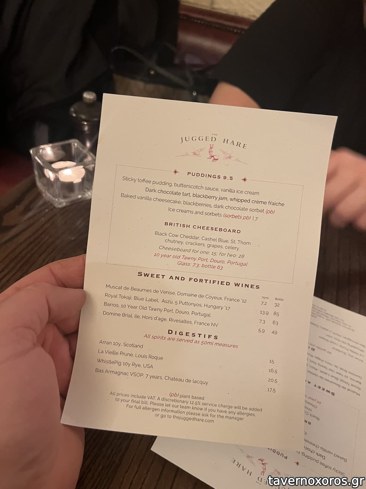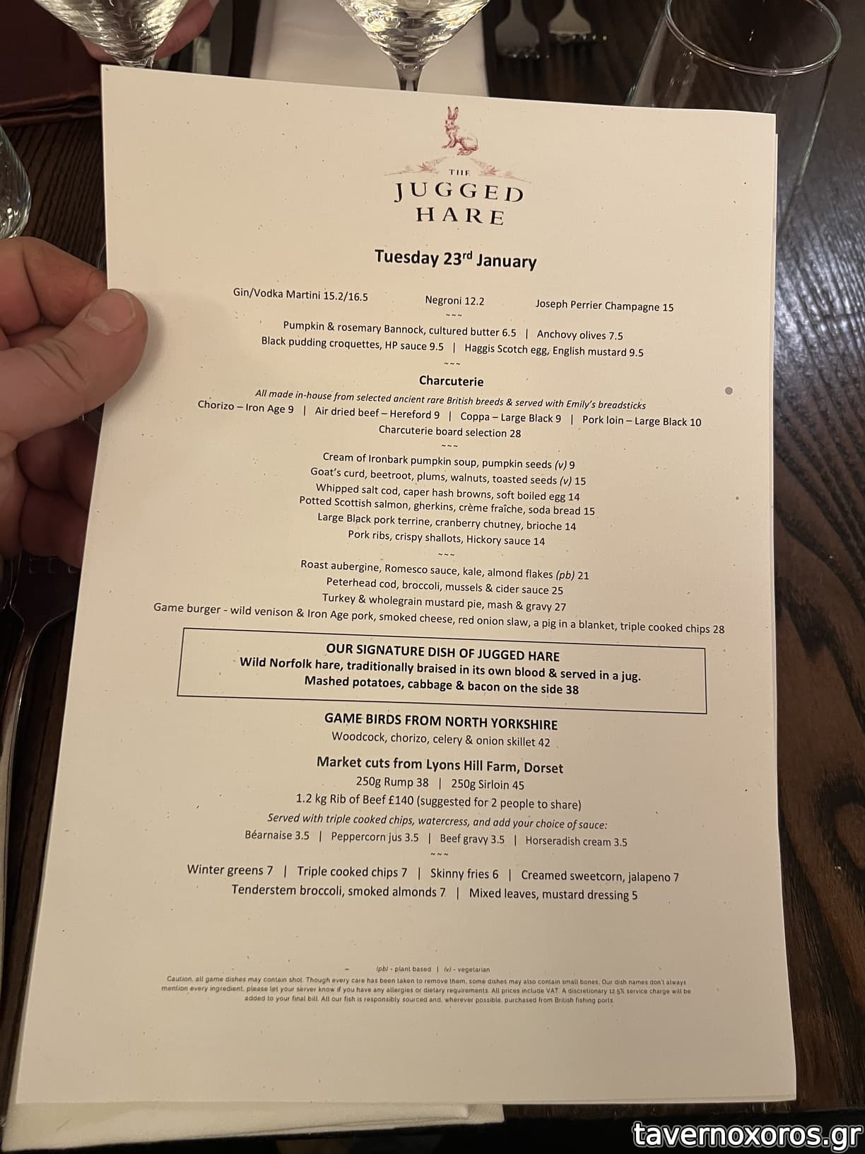 Φαγητό : ο λαγός στην κανάτα ήταν βασικά ένας λαγός στιφάδο, με κούρε και λαρδί. Καλή γεύση αλλά μέχρι εκεί.