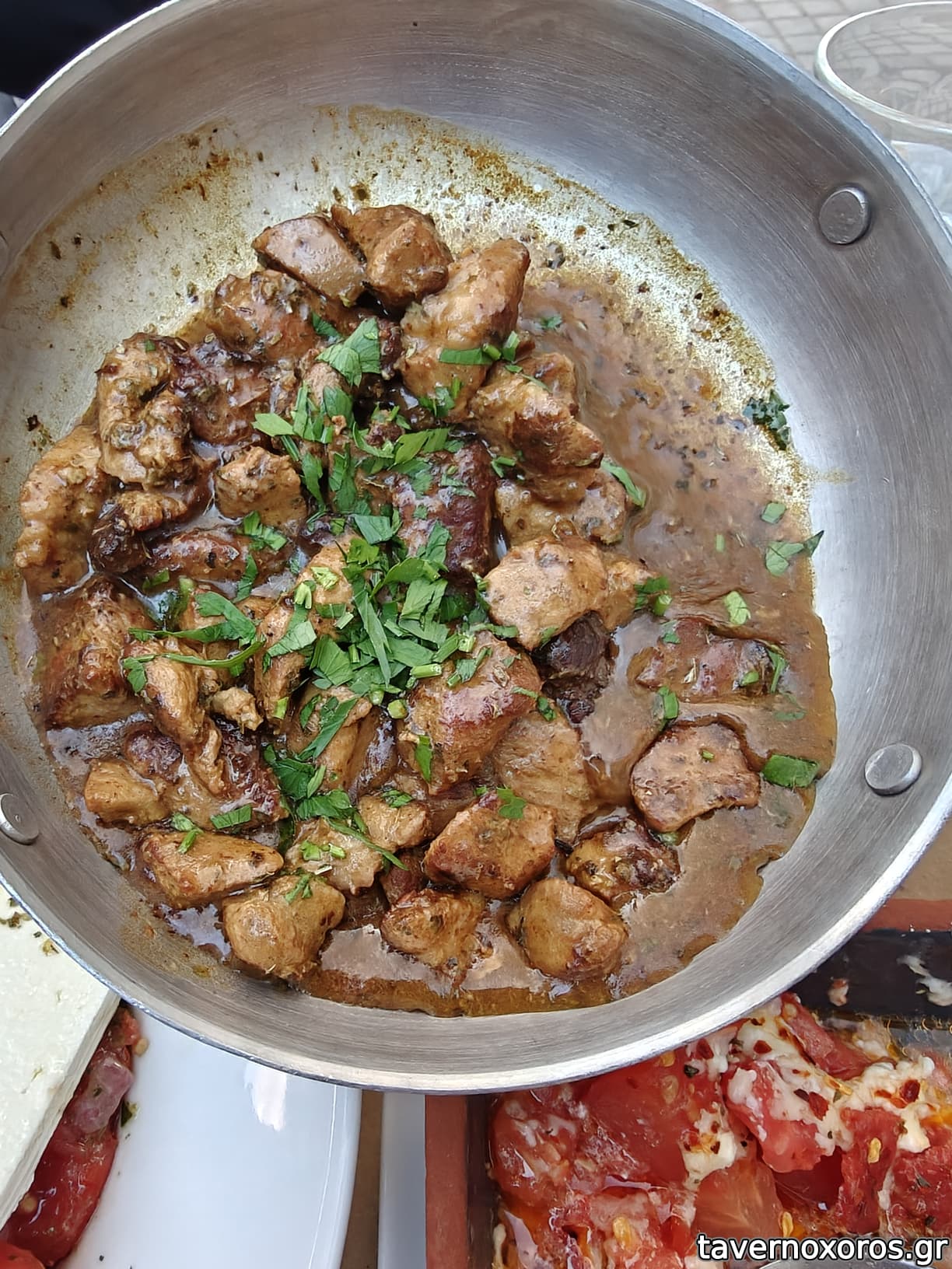 -Συκωτακια κοτοπουλο με καραμελωμενα κρεμμυδια. Το χαιλαιτ. Πολυ καλο, εξαφανιστηκε τσακ μπαμ.
