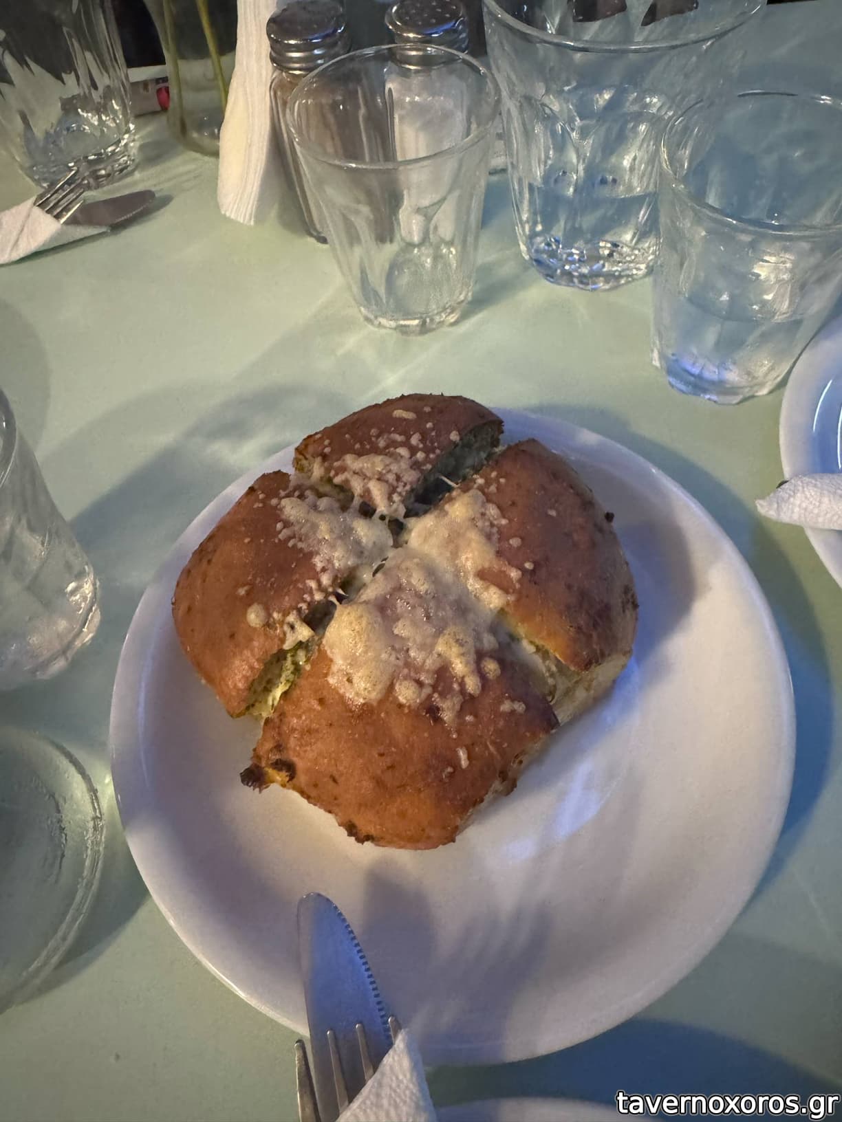 Σκορδόψωμο (καλό, ήταν γεμιστό με τυρί κρέμα, ήπιο το σκόρδο)