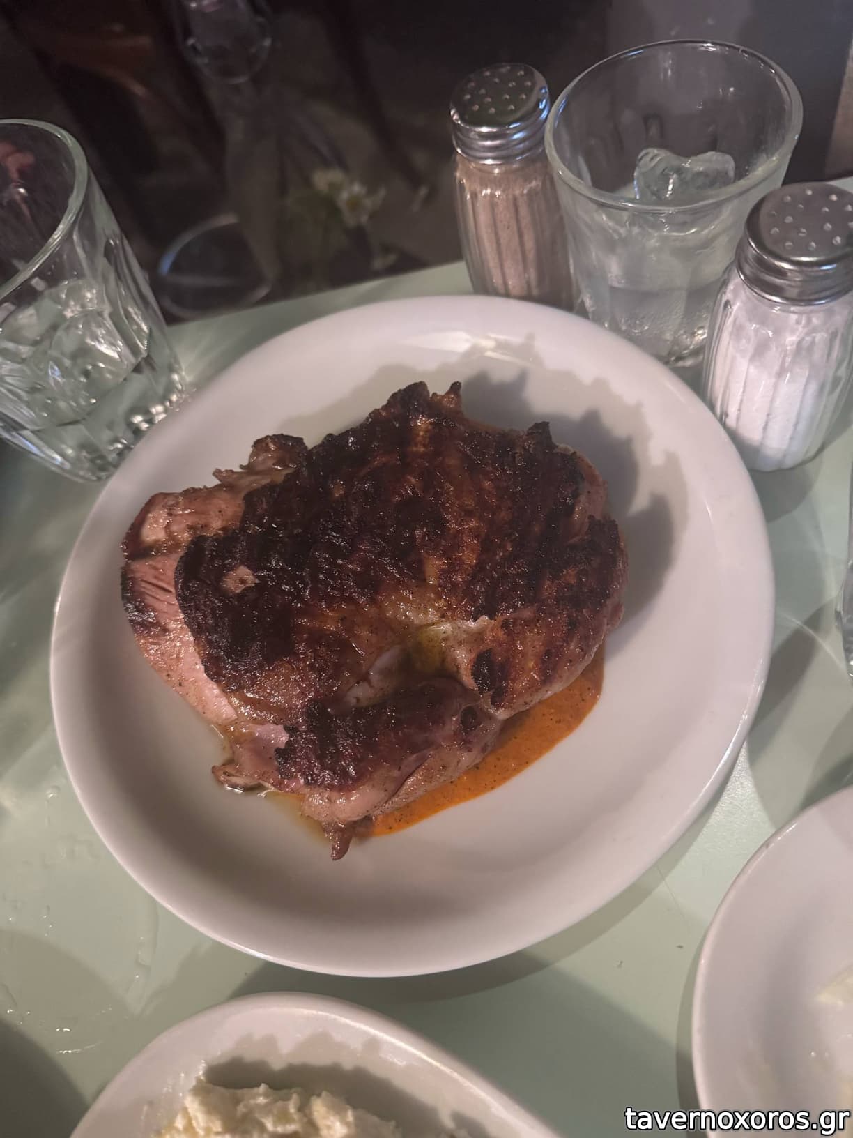 Μοσχάρι με πουρέ μελιτζάνας (καλό, ο πουρές πολύ καλός και η μελιτζάνα ήταν καπνιστή)