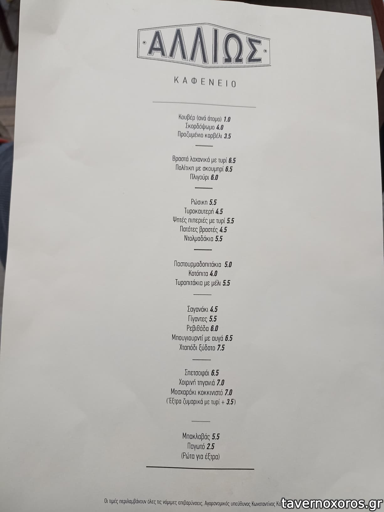Πολύ ικανοποιητικό φαγητό σε λογική καφενείου, γεύσεις γνώριμες με περιποιημένη εμφάνιση και δημιουργική διάθεση (βλ. ταραμάς με τηγανιτές μπάμιες). Πολύ καλό και το χύμα τσίπουρο Τυρνάβου. Το προσωπικό ευχάριστο και βοηθητικό.