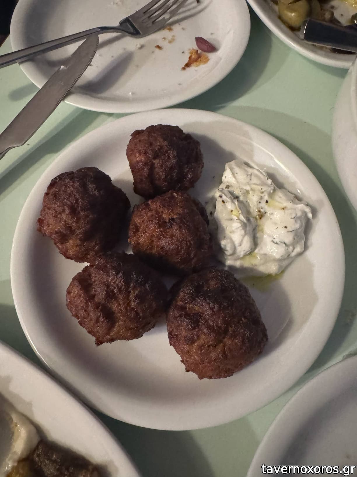 Κεφτεδάκια με τζατζίκι (καλοί, ήπιο σε σκόρδο με ξύσμα λεμονιού που έδωσε φρεσκάδα)