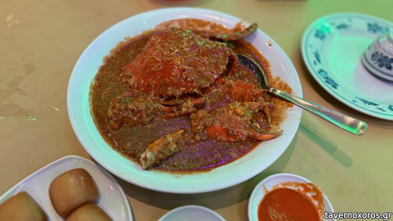 Chilli crab σε πικάντικη σάλτσα τομάτας με αυγό για να δέσει (πόρωση)