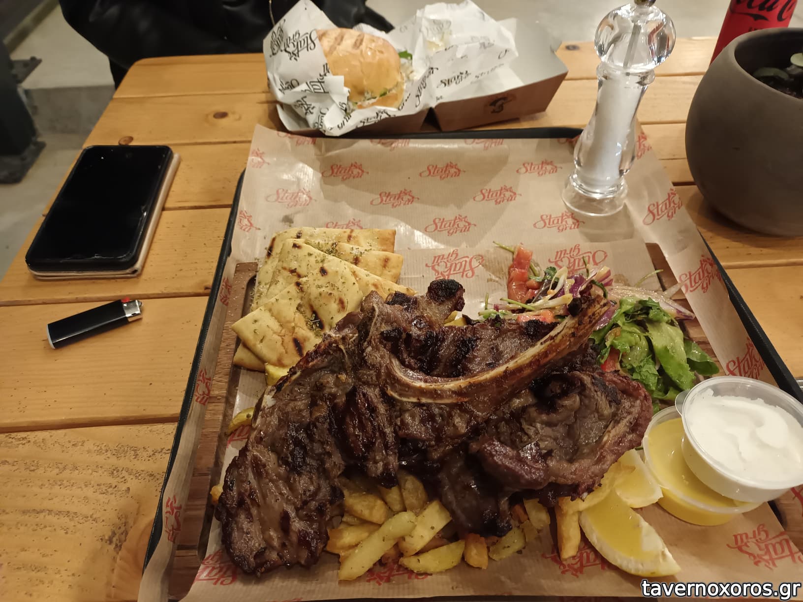 Πρόβεια παϊδάκια (7/10 για Θεσσαλονίκη, 5/10 σε σύγκριση με σοβαρό πρόβειο) και Stack Burger (καλούτσικο)