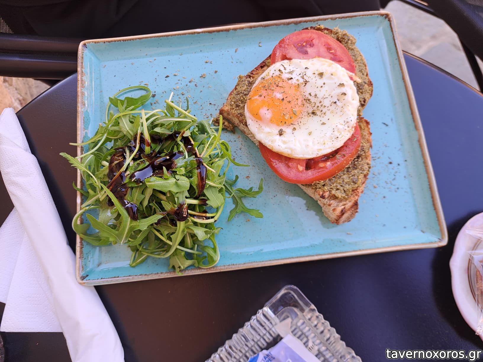 Η παρέα δοκίμασε μια μπρουσκέτα με πέστο, ντομάτα και αυγό, αρκετά καλή και αυτή.