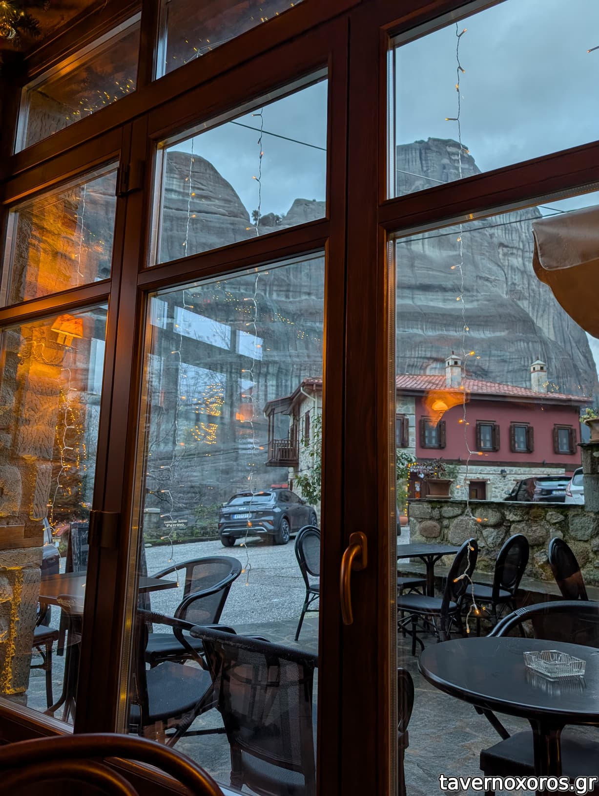 Χαλαρή αυλίτσα με φιλικές γάτες, ελάχιστη κίνηση και θέα στους βράχους των Μετεώρων, σμουθ τζαζ και μπόσα νόβα, λίγα φαγητά για τσιμπολογημα και αρκετές επιλογές σε ποτό.