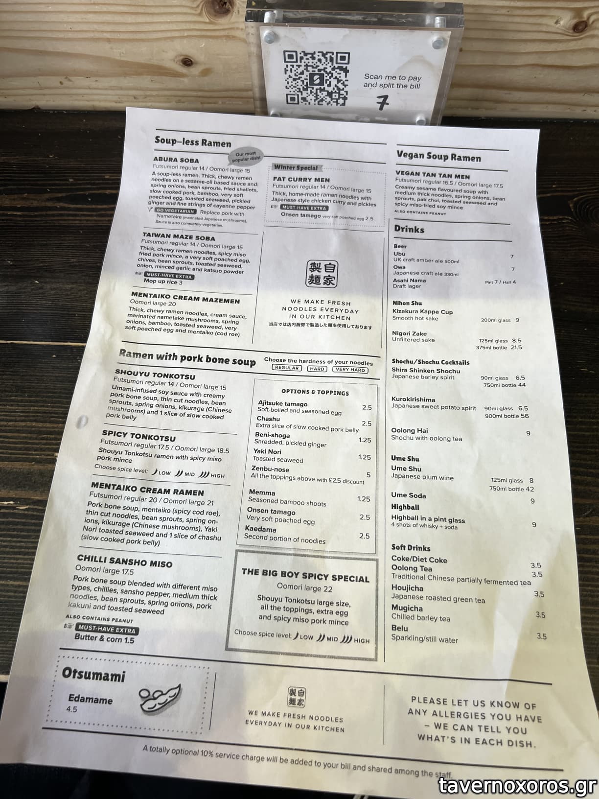 Το ραμεν του πραγματικά πολύ καλό, χρησιμοποιούν meintako ( αυγά ψαριού ) που δίνει έξτρα γεύση στον ήδη πλούσιο ζωμό.
