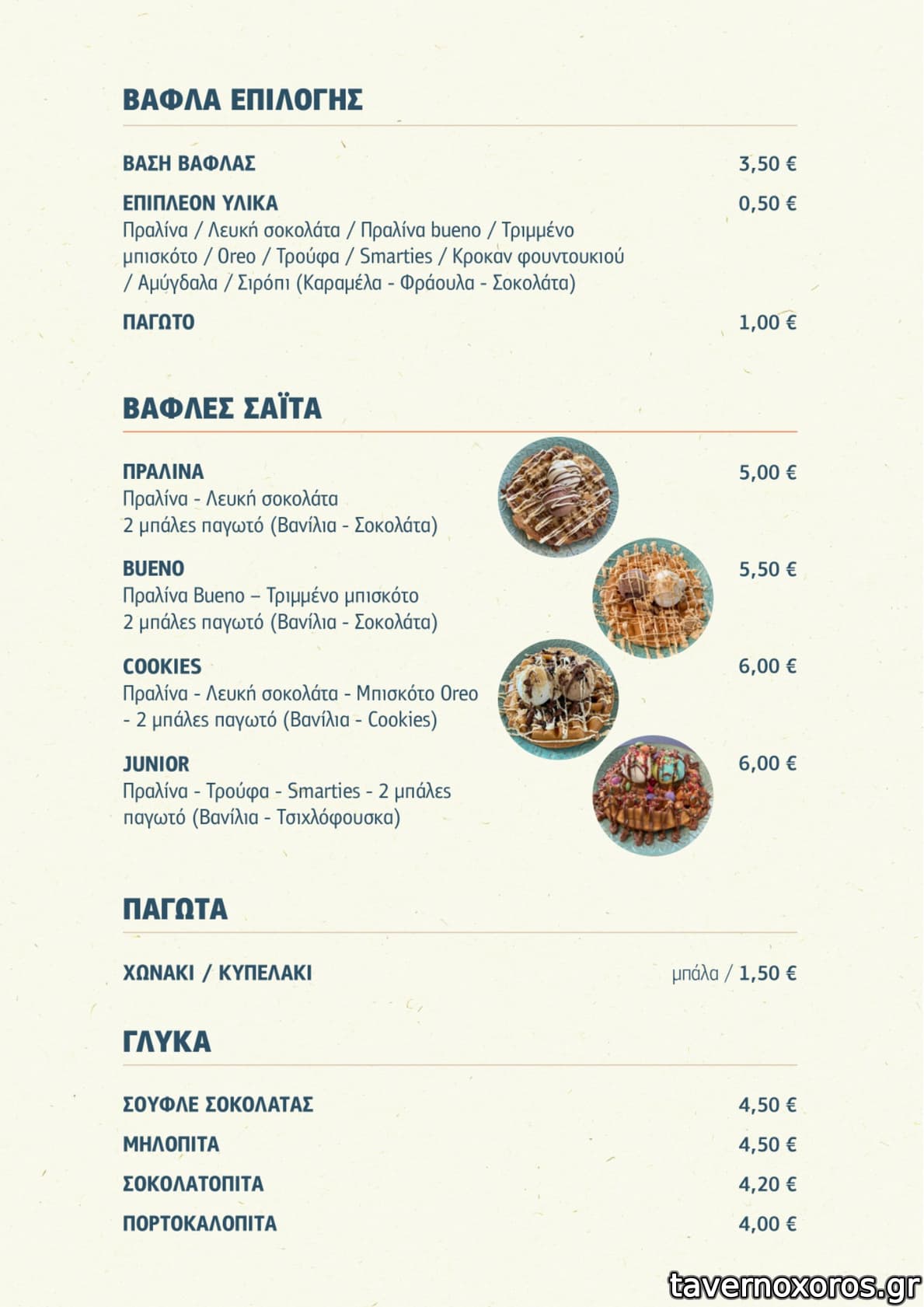 | Λέξεις κλειδιά | #κατάλληλο για παιδιά, #πάρκο, #cafe-bar, #snacks, #παιδική χαρά, #ποικιλία τυριών, #ποικιλία αλλαντικών, #μανιτάρια, #μπάτζος, #σφακιανή πίτα, #πιπεριές, #νιόκι, #ζυμαρικά, #ταμπουλέ, #τηγανιά, #κεφτεδάκια, #κοτόπουλο, #πρόβειο, #πανσέτα, #μπιφτέκι γεμιστό, #σουτζουκάκια, #χοιρινή, #γύρος, #μπακαλιάρος, #club sandwich, #τοστ, #burgers, #βάφλες, #μηλόπιτα, #πορτοκαλόπιτα |