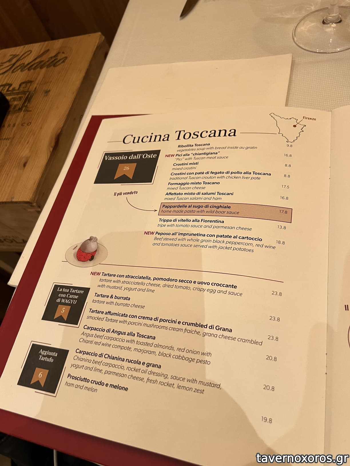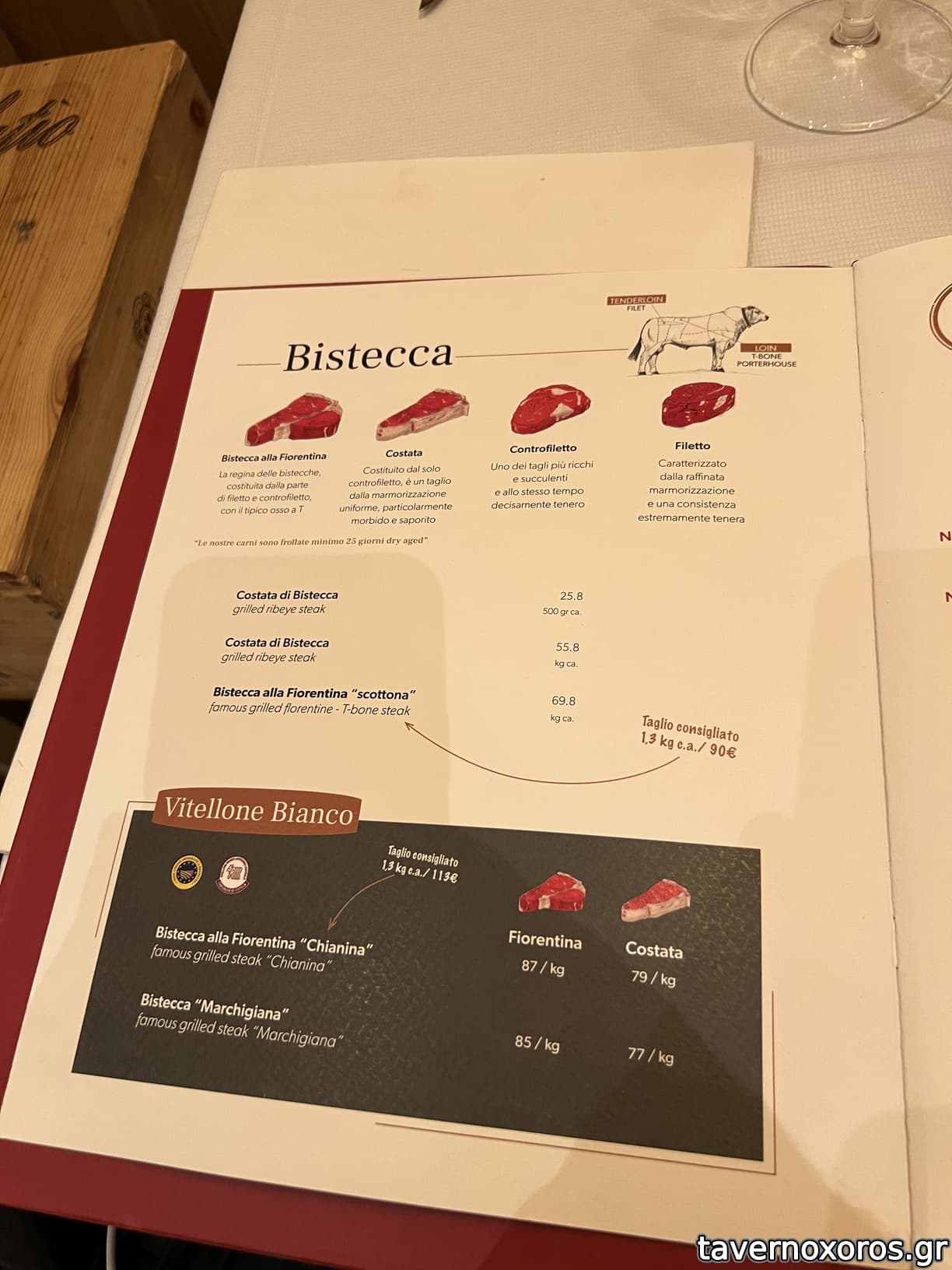 Δοκίμασα μια chianina η οποία είναι μπριζόλα από ντόπιο ζώο. Ήρθε πολύ καλοψημένη και φυσικά μεγάλο μέγεθος 1,