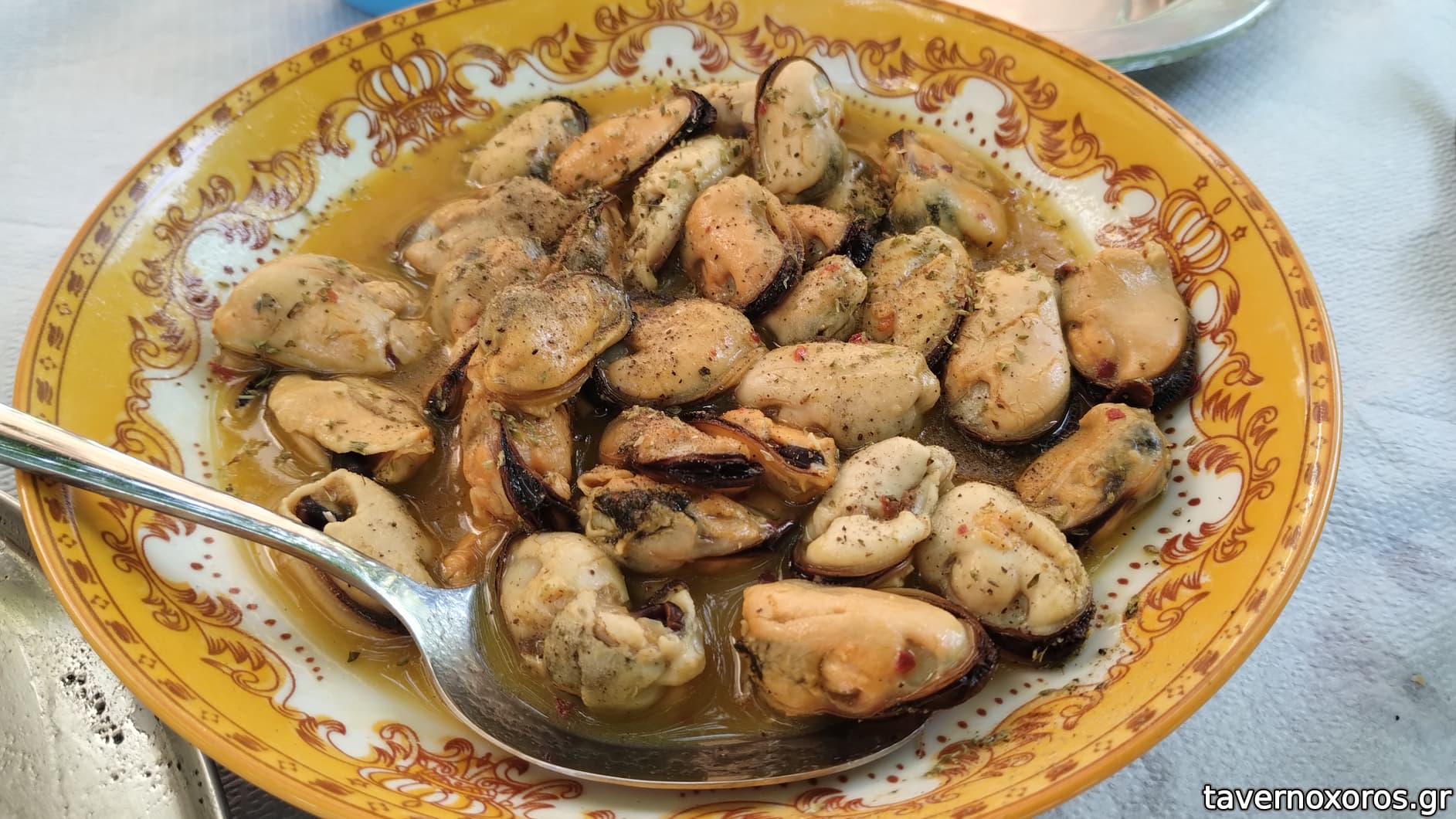 Μύδια σαγανάκι χωριστή μερίδα (όχι καλά: ήταν τραχιά, ήθελαν κι άλλο βράσιμο, και το ζουμί φτωχό)