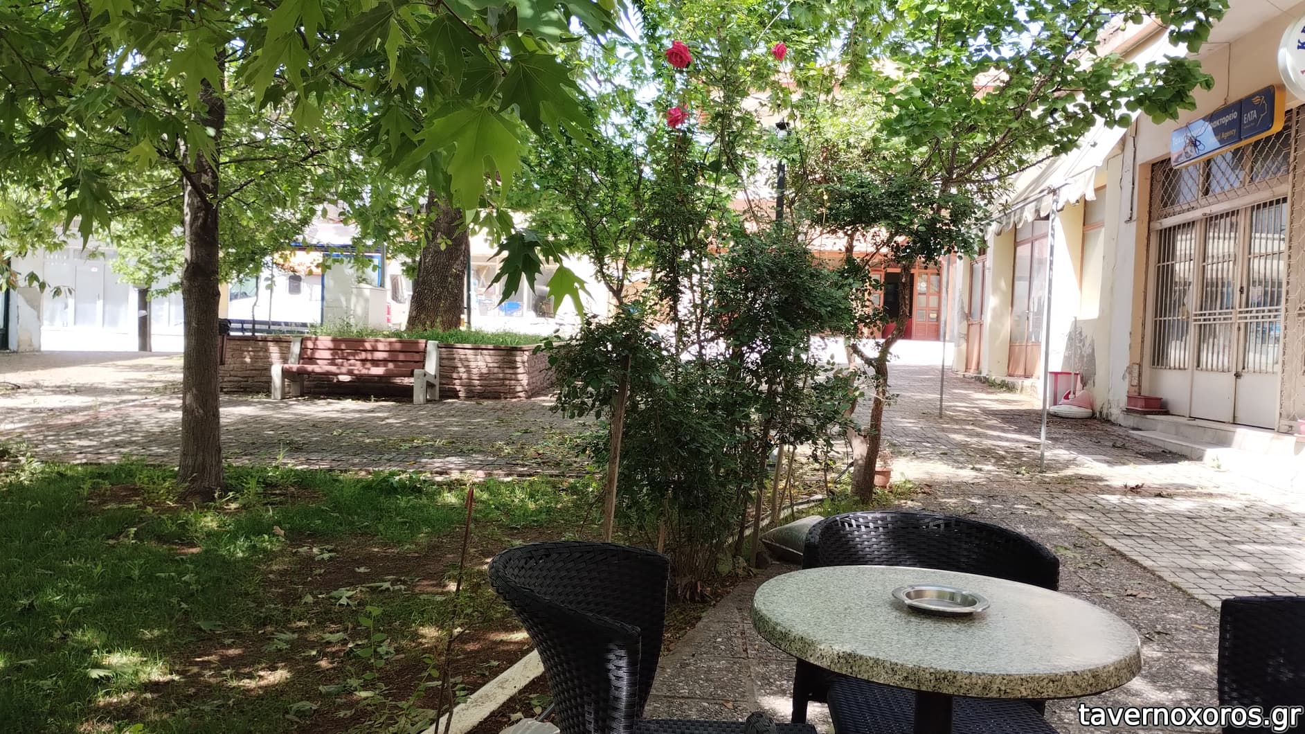 Βρίσκεται σε μια μικρή πλατειούλα, στο άνω μέρος του χωριού (αγνοούσα αυτό το κομμάτι). Γύρω- γύρω έρημα κλειστά καταστήματα, αλλά η πλατεία/ παρκάκι έχει χρώμα και είναι πολύ δροσερή (2 πλατανάκια)