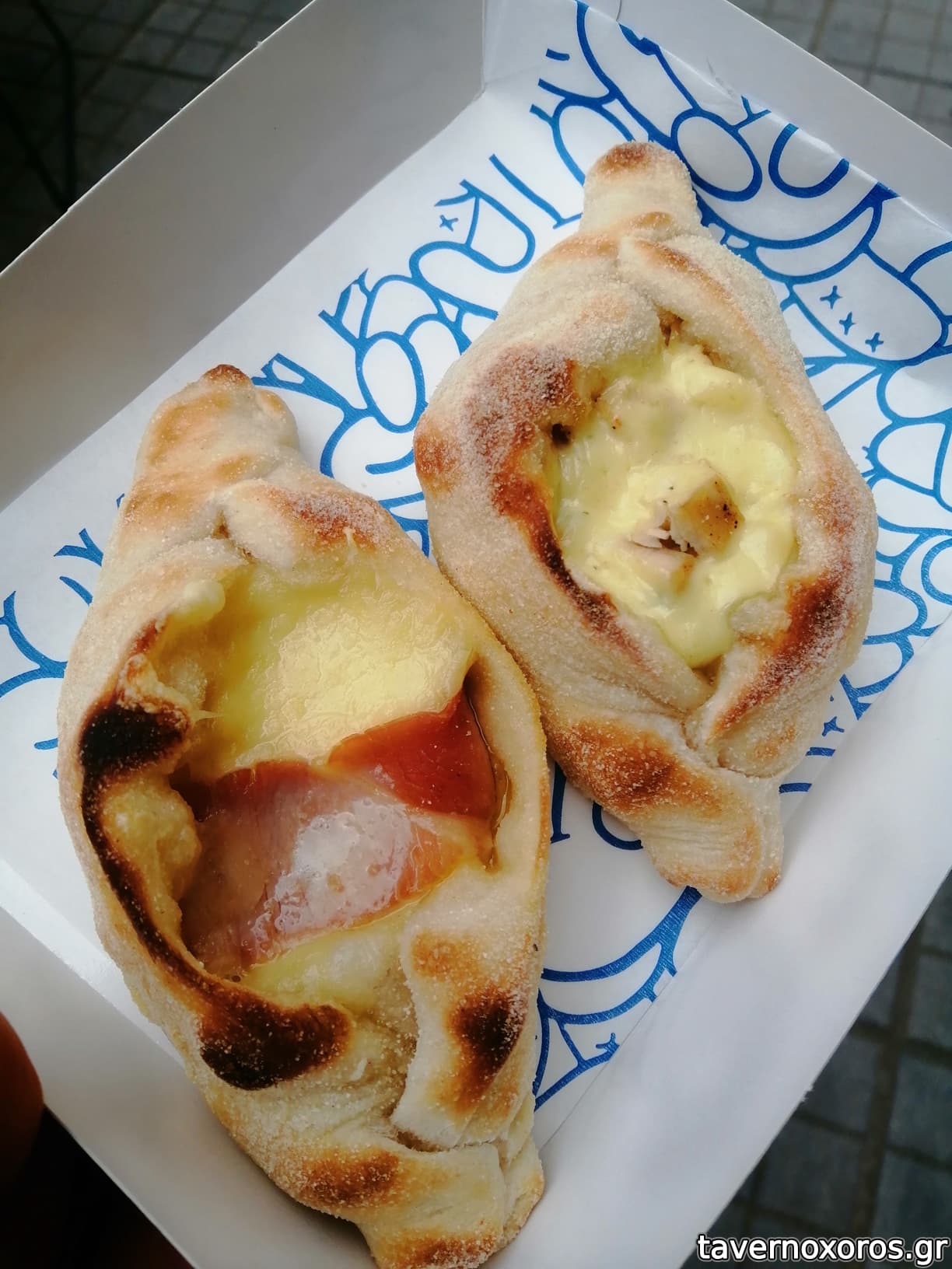 1x gouda και bacon (1,9€) 1x κοτόπουλο με caesar's sauce (2,1€)