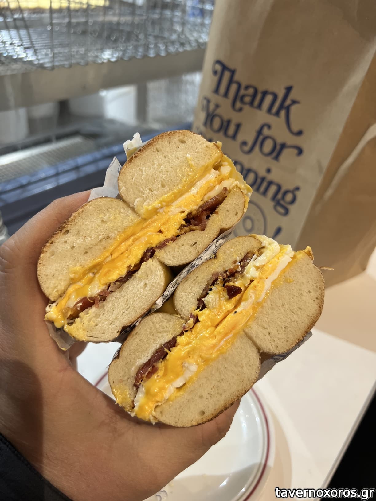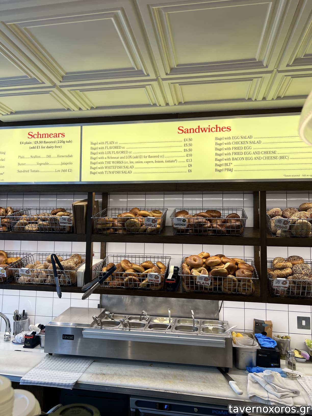 θεωρείται από πολλούς, ό,τι πιο κοντινό στα bagels της Νεας Υόρκης. Προσωπικά δεν είδα την ομοιότητα, ωστόσο μπορώ να πώ ότι τα bagels τους καθεαυτά ήταν μια χαρά, φρέσκα, και τα κάνουν εκεί.