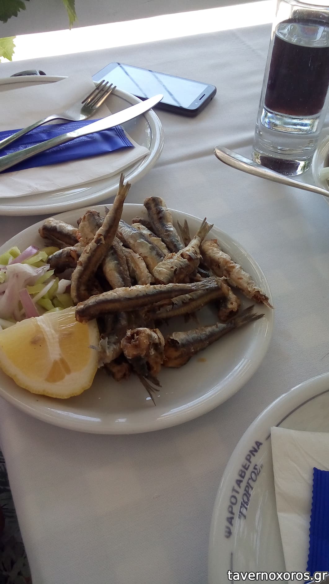 Όμορφη ψαροταβέρνα με μεγάλη σάλα και 5-6 τραπέζια από την κάτω πλευρά του δρόμου προς το λιμάνι.