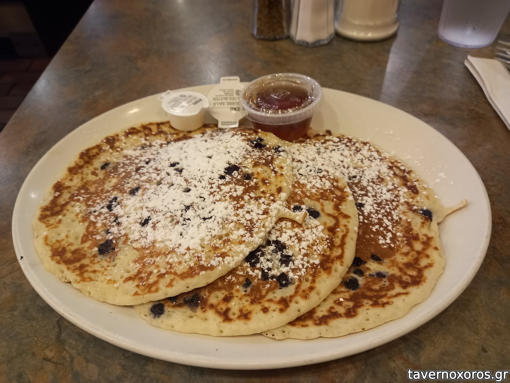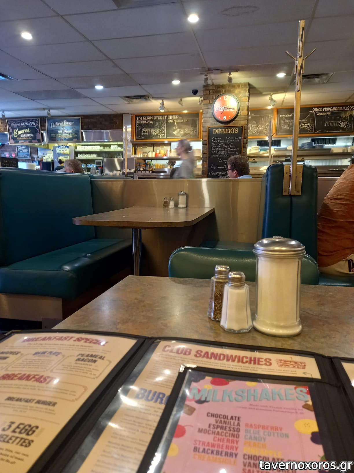 Diner που είναι ανοιχτό 24/7. Δοκίμασα blueberry pancakes (απλά οκ) και vanilla milkshake (καλό). Ο σερβιτόρος με ρώτησε επιφυλακτικά στο τέλος αν θα ήθελα και dessert...
