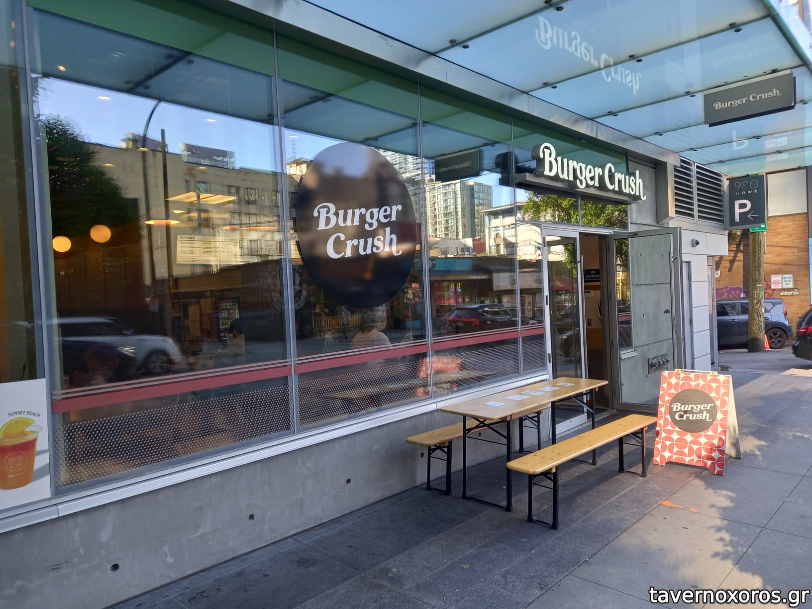 Μέρος της καναδικής αλυσίδας Burger Crush. Δοκίμασα το single cheeseburger που ήταν ωραίο μέσα σε brioche bun. Σαν συνοδευτικό παρήγγειλα
