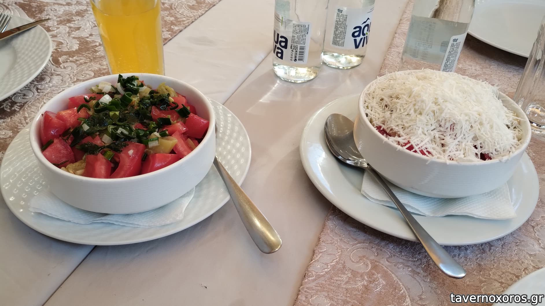 Αριστερά σαλάτα, νομίζω λεγόταν Μοράβα (είχε πράσινη καυτερή πιπεριά) και δεξιά sopska. Και στις δυο πολύ καλή, κόκκινη ζουμερή ντομάτα