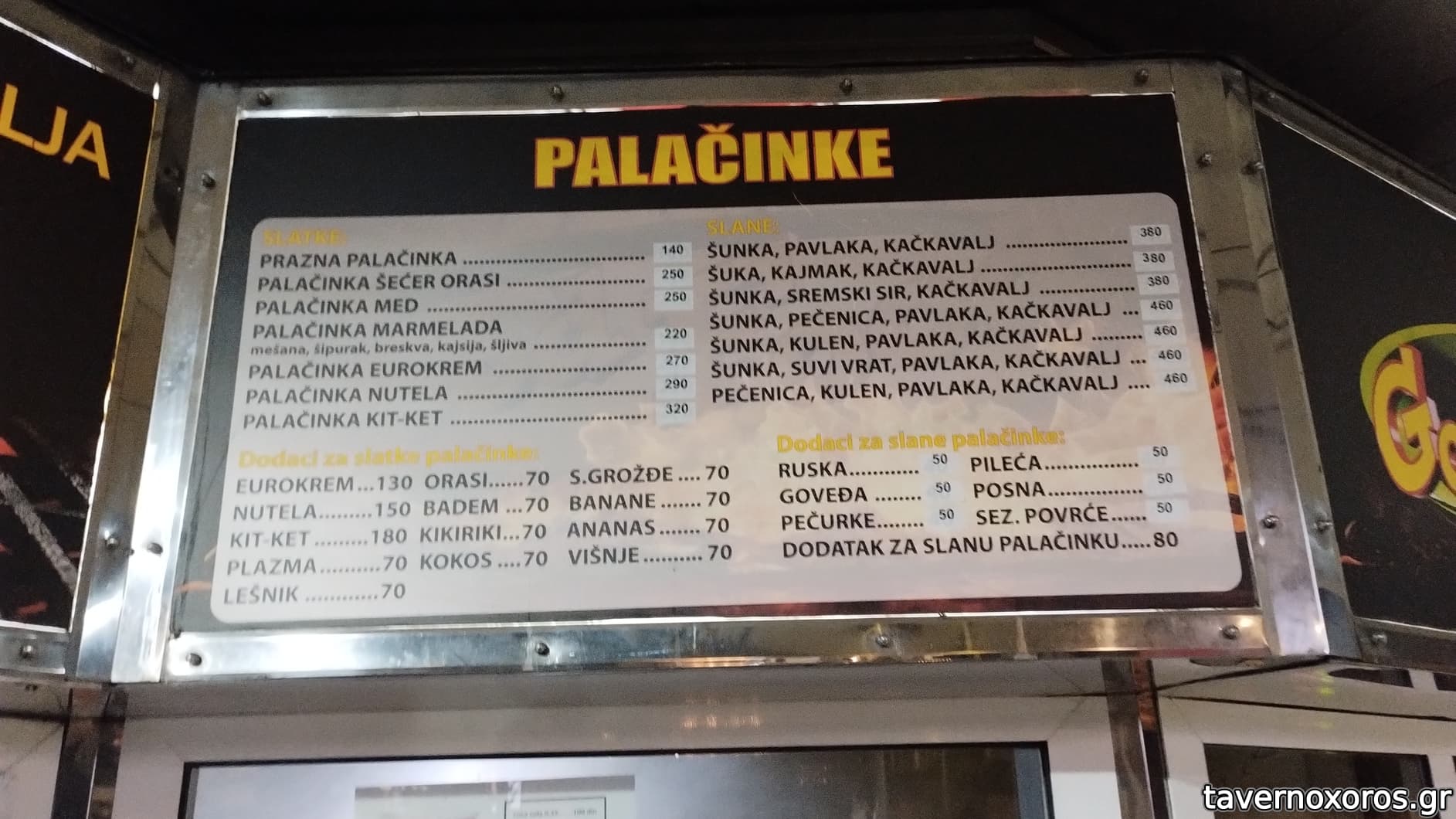 Μπιφτέκι pljeskavica δεν είχε τη στιγμή που φτάσαμε μπροστά στο παράθυρο, κι έτσι ο καθένας πήρε ό,τι υπήρχε: φιλέτο κοτόπουλο, μπριζόλα χοιρινή (λαιμός, αν κατάλαβα καλά) και εγώ έφαγα λουκάνικα (Kobasice). Βάζει αρκετά τεμάχια λεπτά λουκάνικα μέσα στο ψωμάκι. Ήταν βέβαια νόστιμα και λίγο πικάντικα.