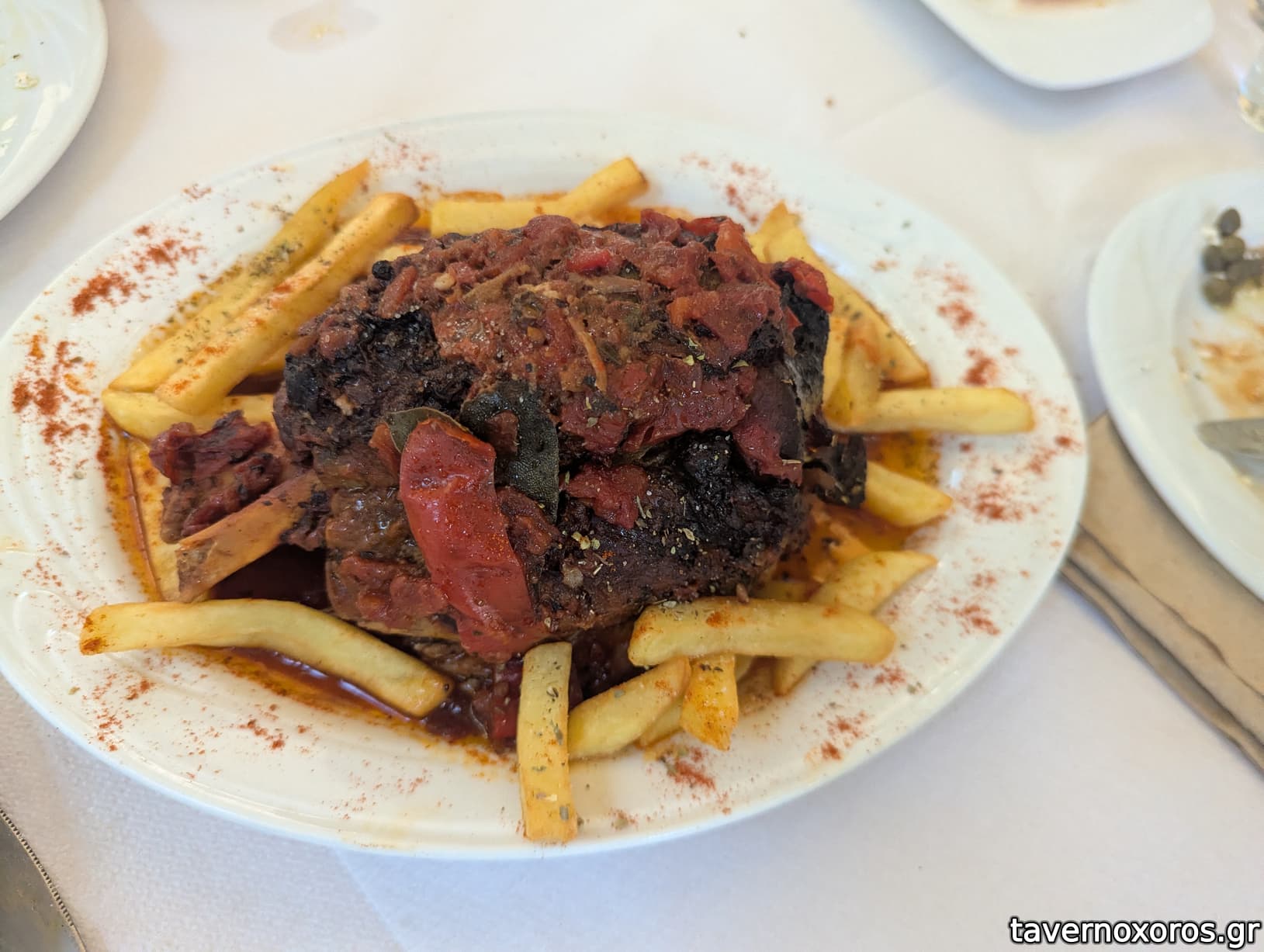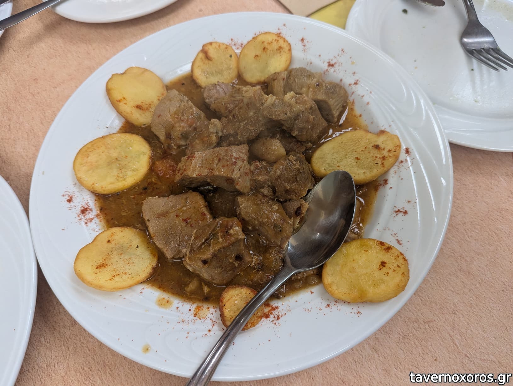 Παπαμανώλης: χοιρινό κρασάτο (οκ, νόστιμο ζουμί, πολύ διαφορετική εικόνα σε σχέση με το πιάτο της Γιαντράνκας)