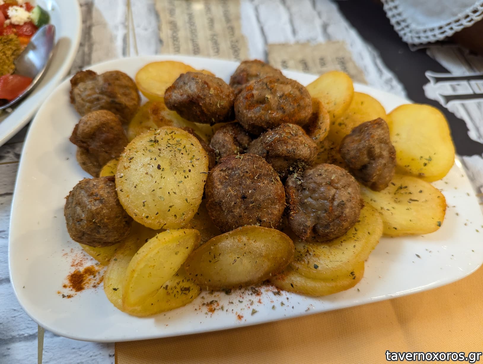Κεφτέδες με τηγανητές πατάτες (περίεργο, όχι καλό)